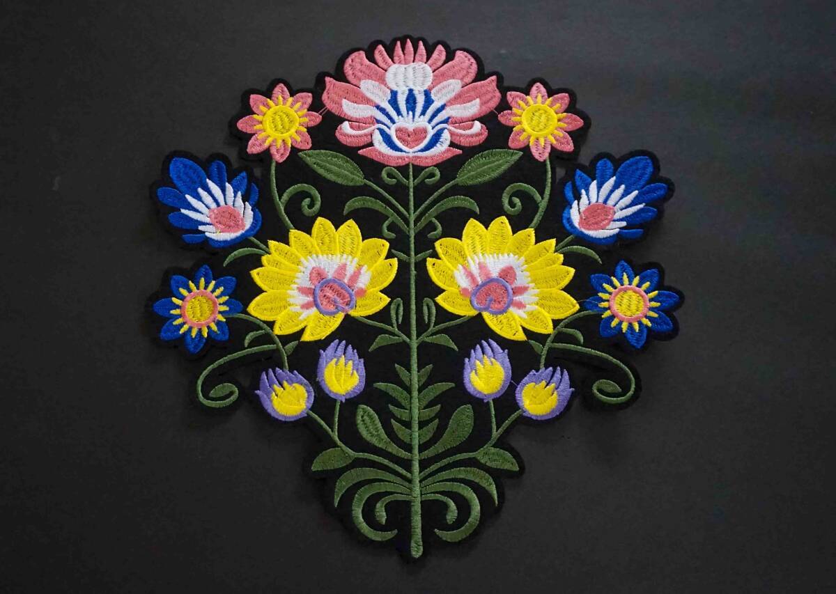 《特大US桃1黄2芸術花》◆■新品未使用 『花』美しい アートデザイン 芸術 美術 刺繍ワッペン(パッチ) ■スカジャン フライトジャケット ■サバゲー ミリタリー ファッション バイク ライダー おしゃれ リメイク■洋服・衣類・衣服DIY■■素敵■《開運 幸運 ラッキーアイテム》