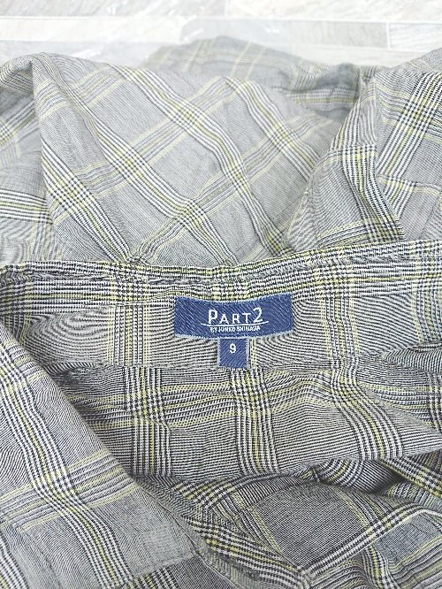 ◇ ◎ PART2 BY JUNKO SHIMADA パートツーバイジュンコシマダ チェック柄 七分袖 チュニック サイズ9 グレー レディース P