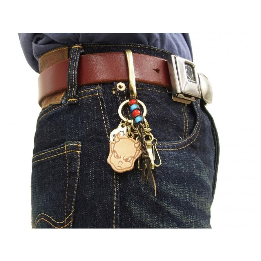 ビーズを編み込んだレザーロープ、テッドマンフェイスのレザーパッチ、
