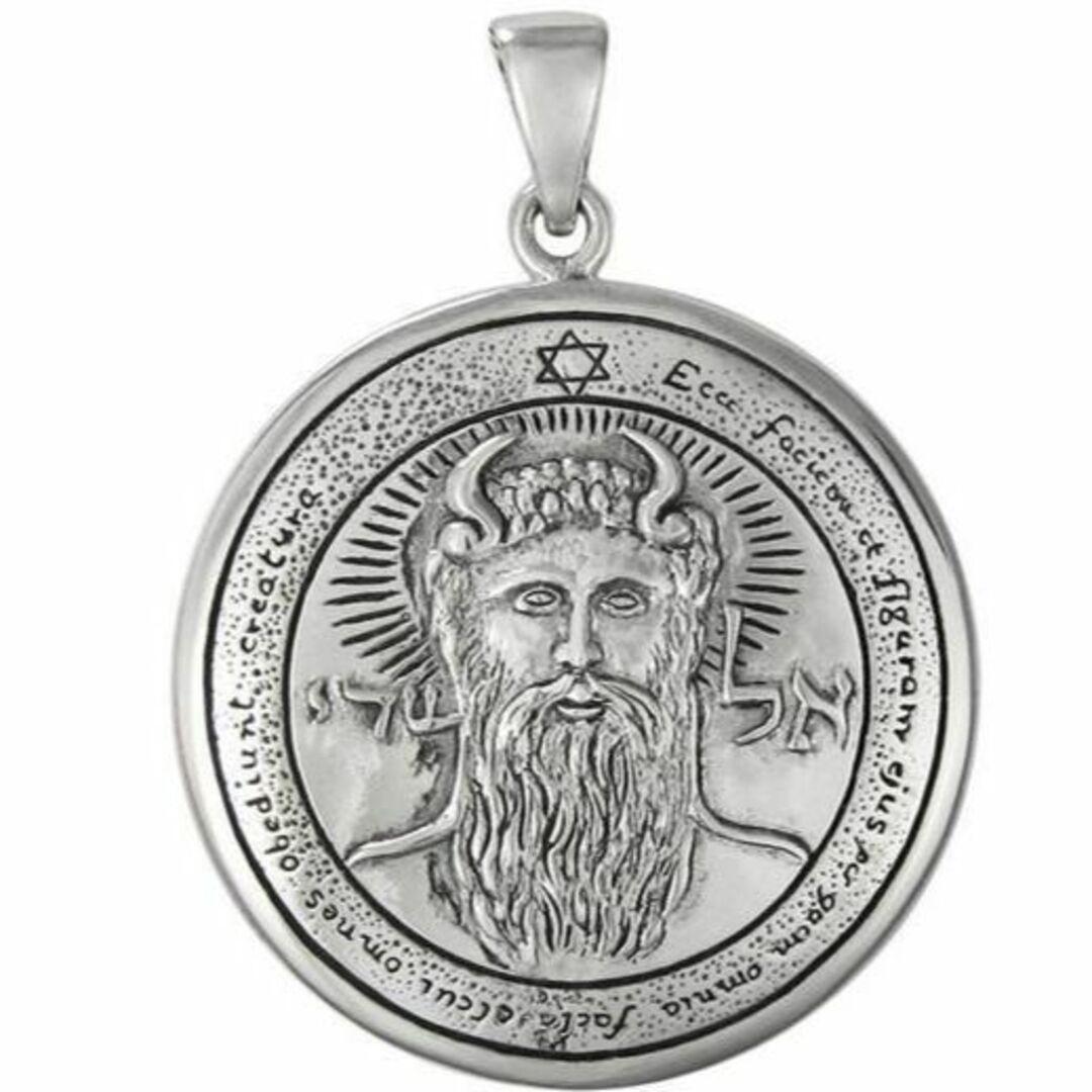ソロモン王の儀式魔法のグリモア「ソロモンの鍵」に見られるお守りのデザインを再現したものです。ヘルメスの錬金術、ローマ占星術、カバラの影響を含むソロモンの魔法は、西洋の難解なオカルトの伝統の基礎となっています。