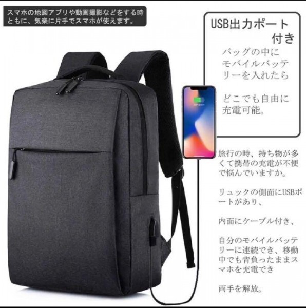 ・モバイルバッテリー専用のUSBポートも配置し、背負ったままスマホを充電することが出来ます。