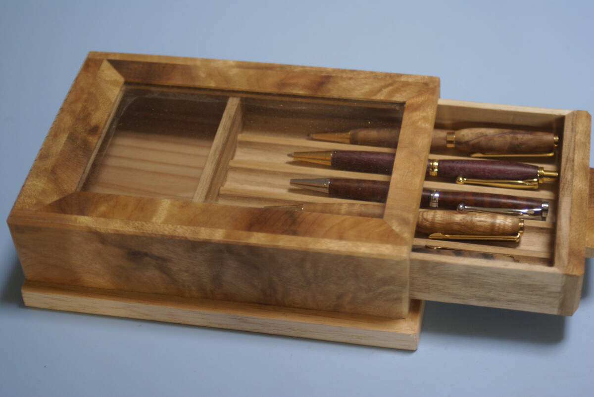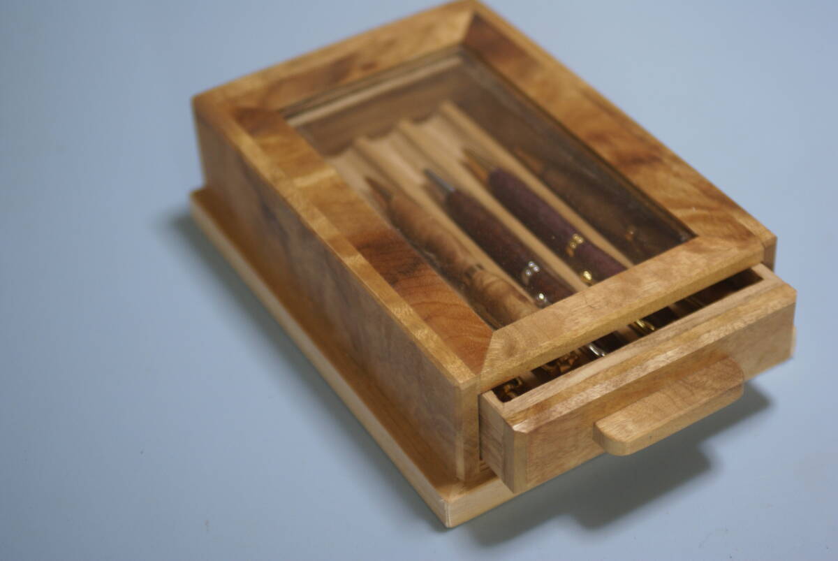 クスノキチジミ玉杢無垢の筆記用具コレクションケースです。