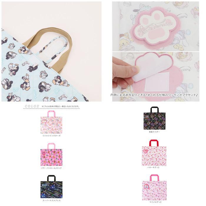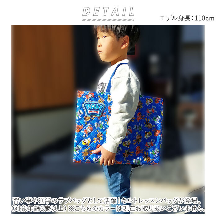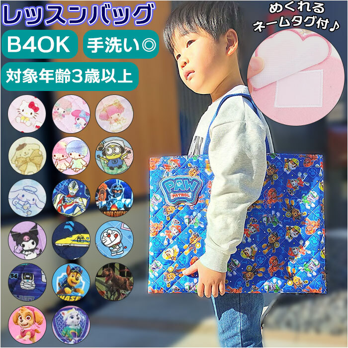 | 商品説明 | ・・習い事や通学のサブバッグとして活躍!キルトレッスンバッグが登場。(対象年齢3歳以上) ・内側にお名前を記入できる!めくれる仕様のワッペンがアクセント♪ ・バッグには全面プリント柄のキルト生地を使用。ふんわり柔らかく、とっても軽量◎ ・内側はB4サイズ対応で、大きめの楽譜などもすっぽり♪小物収納に便利な吊りポケットとネームタグ付き。(※マチがないため、厚みのある楽譜などは収納できません。) ・長さの異なる2種類の持ち手を装備。短い持ち手(内側)を使って机の横に掛ければ、床につきにくいのも嬉しいポイント。 ・汚れが気になったら手洗いOK。 ・お子さまに人気のキャラクターデザインや乗り物デザインをラインナップ★ ・入園・入学準備にもおすすめ。 |