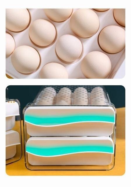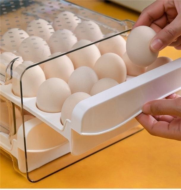 ★たまごや食品を保管できるおしゃれな大容量の卵ケースです。たまご、キウイ、レモンなどを浅い容器に区分保管。おしゃれで、耐久性もよく、きれいに見えます。いろんなサイズのたまごが入れます。