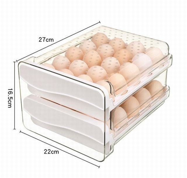 LRM5195★卵ケース 卵収納ボックス 冷蔵庫用 食品保存容器 引き出し式 持ち運び 玉子ケース 区分保管 2段 透明 40個収納