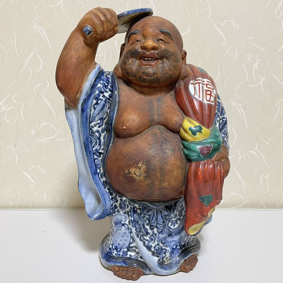 古い布袋様の置物 縁起物 陶器 古久谷 古道具 古民家 美術 伝統工芸 七福神 布袋 置物 陶器 縁起物 インテリア オブジェ 和風