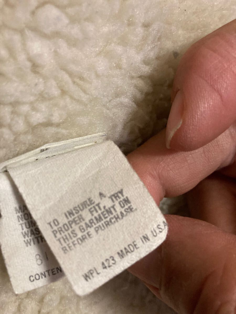 この年代特有のムラ感のある色落ちで私見ですが7割くらいの色落ちです。ボアにやや薄汚れがあります。
