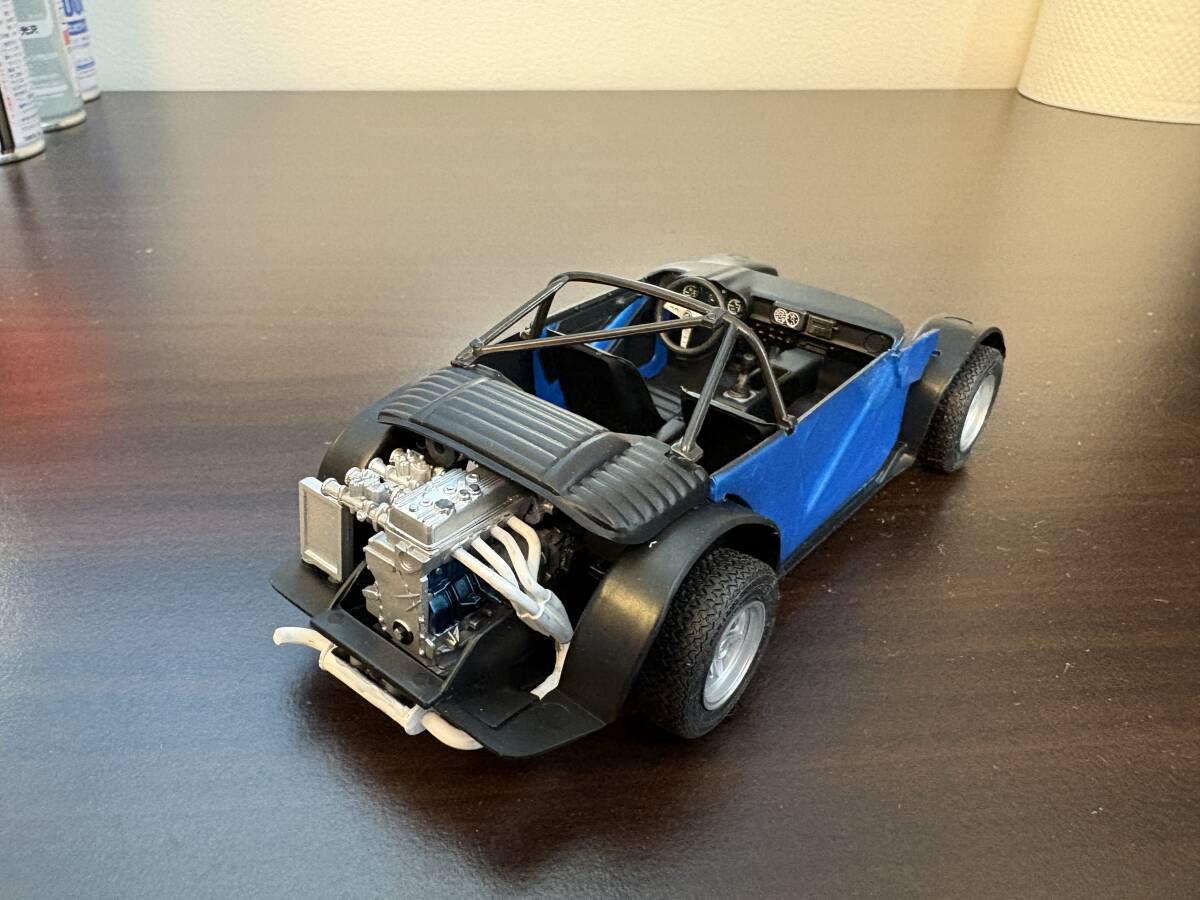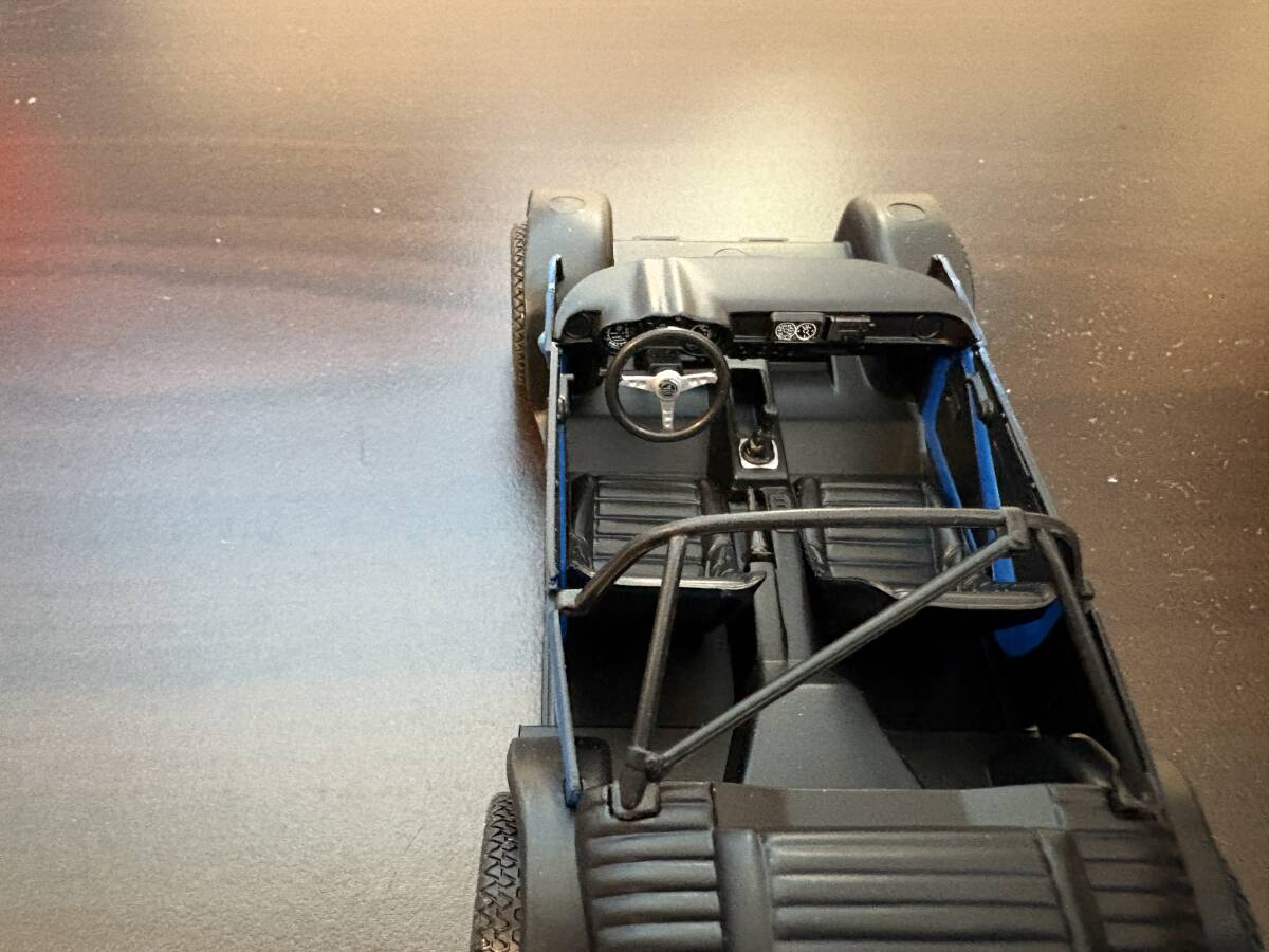 ・外装についてはMr.カラー#76 メタリックブルーに#34スカイブルーを少量で混ぜて、実車のアルピーヌブルーに近い色合いとして、デカール貼付、その上にガイヤExクリアーで厚めにトップコートして仕上げました。