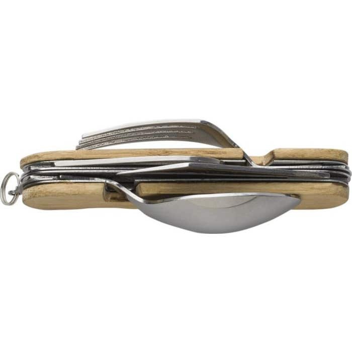 | こちらは可愛いウッド仕上げでコンパクトなボディの中に、スプーンやナイフなど食事にまつわる7種類のツールを搭載したカラトリーになります。 アウトドアーや山登り・非常用に活躍するフォーク&スプーン&ナイフ&栓抜き&ワインオープナー&リーマー(穴あけ)&収納ケースのフルセット道具になります。 ナイフやフォークなどの細長い食器はかさばりやすく、持ち運びが面倒ですよね。アウトドアやお弁当に使う食器なら、できるだけコンパクトになったカラトリーです。 ツールを畳んだ状態の同商品は、サイズが10.8(幅)×3.3(奥行)×3.4cm(高さ)ほど。専用の収納袋もついているので、お弁当用の食事セットとしても重宝しそうです。 このカラトリーはフォークとスプーンを展開させると2つに分離。おかげで2種類の食器が同時に利用可能です。 ボディが分かれるため、搭載された機能もフォーク側とスプーン側に分離。フォーク側には「コルク抜き」「缶切り」「栓抜き」が搭載されています。対するスプーン側には、「ナイフ」と「リーマー」が。それぞれのツールをスライドさせて出し入れできるので、ナイフとフォークを同時に使うこともできます。 材質はステンレス仕様ですので汚れやさびに強くなっています。 また持ち運びに便利な収納ケース付きでベルトに着けれるようにループが付いておりとても便利です。 災害用リュックや山登りリュックに入れておくといざといったときに安心です。 商品詳細 ブランド:GENERIC OUTDOOR 品番:GO-KW001 折りたたみサイズ:幅約10.8 x 高さ3.4 x 奥行3.3 cm 広げた時のスプーンサイズ: 約18cm 広げた時のフォークのサイズ:約18cm ナイフを出したサイズ 約18cm 重さ:約160g セット内容:多機能カトラリー・収納ケース | |||