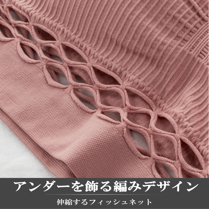 しっかりした伸縮ゴム仕様でノンワイヤー、ストレスフリーでやさしく支えながらフィット。