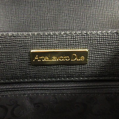 Arte Lavoro Due ハンドバッグ フォーマル 型押し レザー 黒 ブラック レディース
