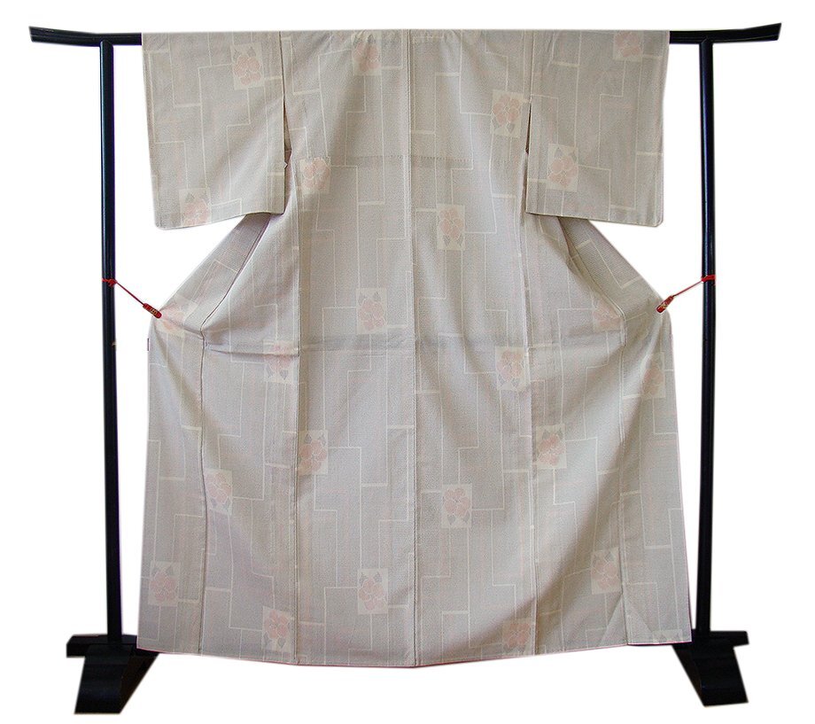 | 商品説明 | こちらのお品は「単衣」仕立てですので、5月、6月、9月にお召頂ければと思います。 着物には、大きく分けて「袷(あわせ)の着物」と「単衣(ひとえ)の着物」と「夏着物」があります。 反物(表地)を着物に仕立てるときに、裏地類をつけるものを袷の着物、 つけないものを単衣の着物と呼び、胴裏や八掛といった裏地がつかない一枚ものの着物です。 また裏地がないため、座る時などにヒップのラインが目立たないよう、 居敷当て(いしきあて)の生地をつけることもあります。 居敷当てはいておりません。 古くから織物の産地として知られている新潟県の塩沢地方。 「単衣といえば塩沢」と知られるように、初夏と初秋の数ヶ月、 着物通をとりこにして離さない着物。 今では四季を通じ、オールシーズン愛用されており、単衣にも袷にも最適な洒落紬でございます。 他の着物には類を見ない「しゃり感」たっぷりの独特の肌触りと 適度なハリは伝統的工芸品の、塩沢紬ならではのものでございます。 絶妙の地風が着物通の方々を虜にする極上の着心地を誘うシャリ感ある さらりとした手触り良い伝統的工芸品の塩沢紬、 象牙色地に黒、赤色の百亀甲に花草柄の飛び柄の織柄、 涼しげで爽やかな素材感が愉しく、暮らしに幅広くお召頂ける逸品です。 |