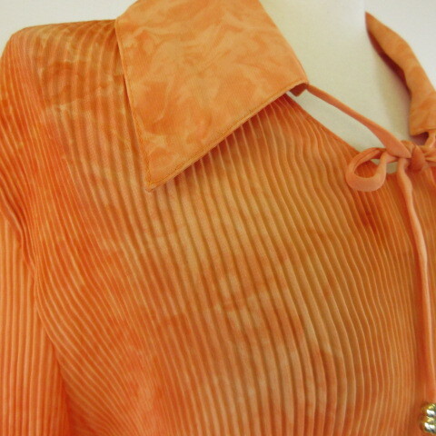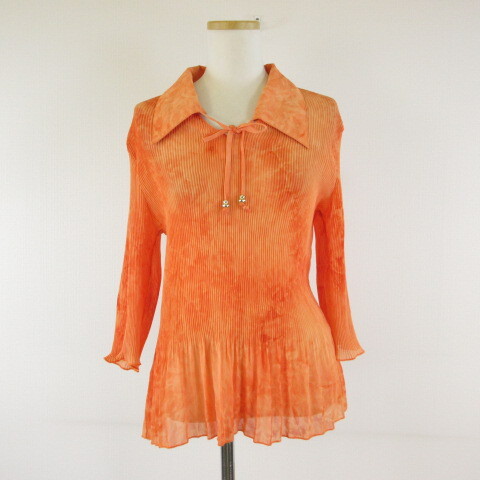 YA HONG カットソー 七分袖 プリーツ オレンジ *T831 レディース