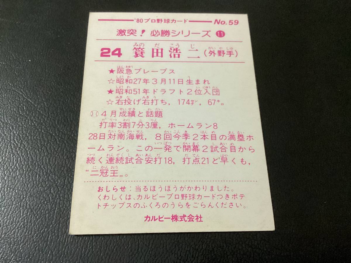 レア カルビー80年 大判(70年代サイズ) 簑田(阪急)No.59 プロ野球カード ショートブロック