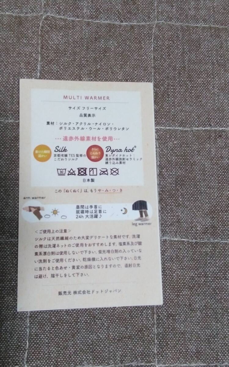 遠赤外線放射セラミック織り込み素材。 アームウォーマー 、レッグウォーマーに。 絹100になります。未開封です。☆他にも出品していますのでよろしければご覧ください。