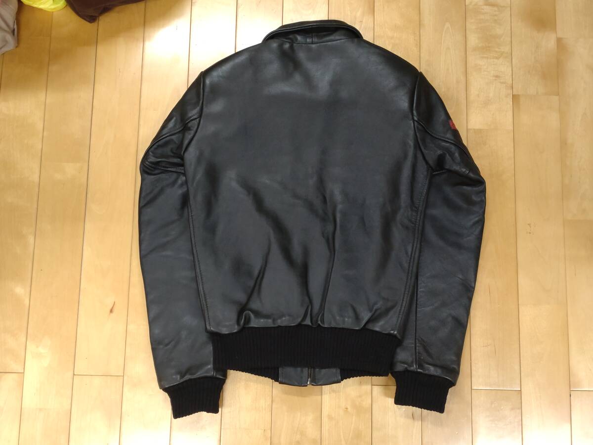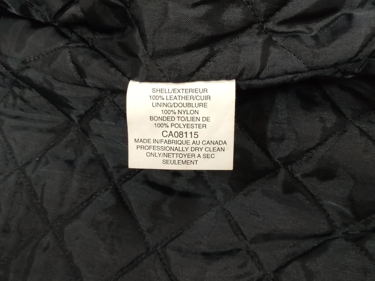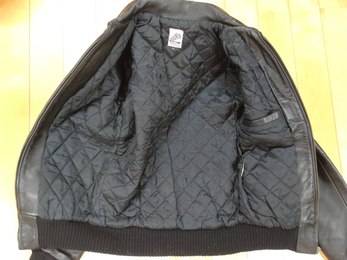 サイズの表記は34で素材は表地が牛革で裏地がナイロン100%で中綿がポリエステル100%になります。