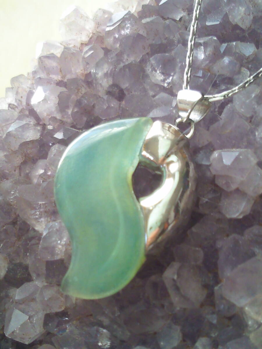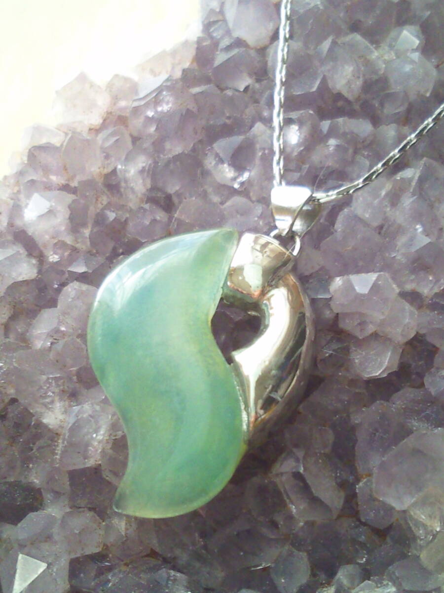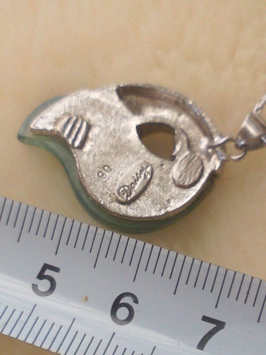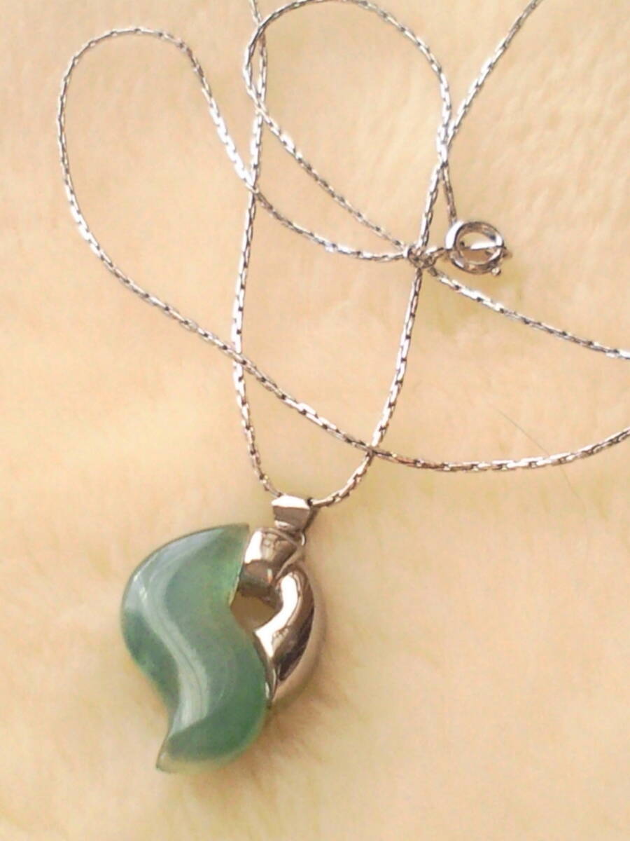 翡翠アンティーク年代物ネックレス●ブランド刻印有レトロ緑翠玉ペンダント●激レア勾玉葉型パワージュエリー天然石ヴィンテージ●送料無料