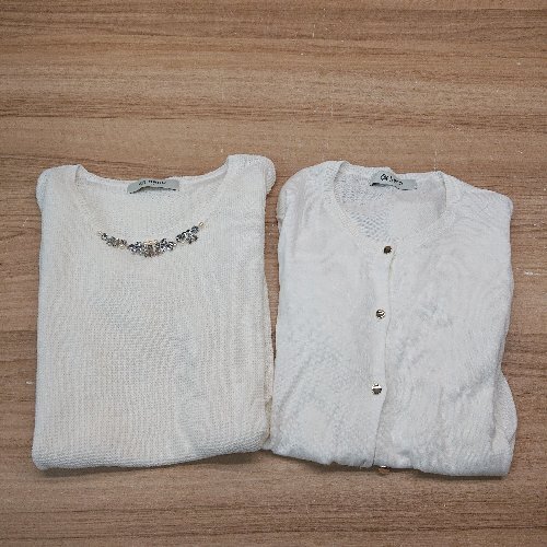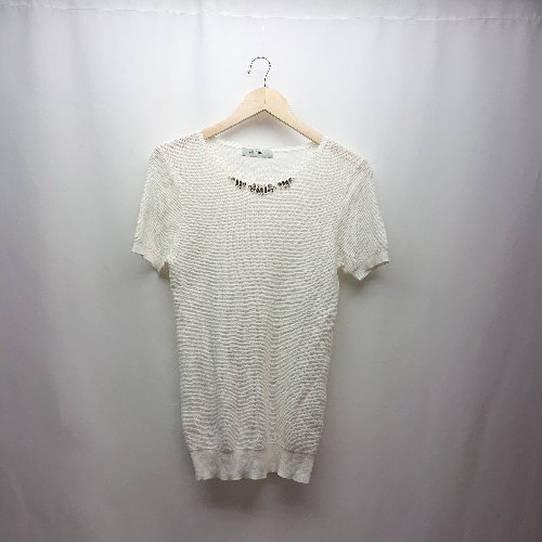 ◇ nano universe カジュアル お出かけ ビジュー 透かし編み カットソー カーディガン サイズF ホワイト レディース E