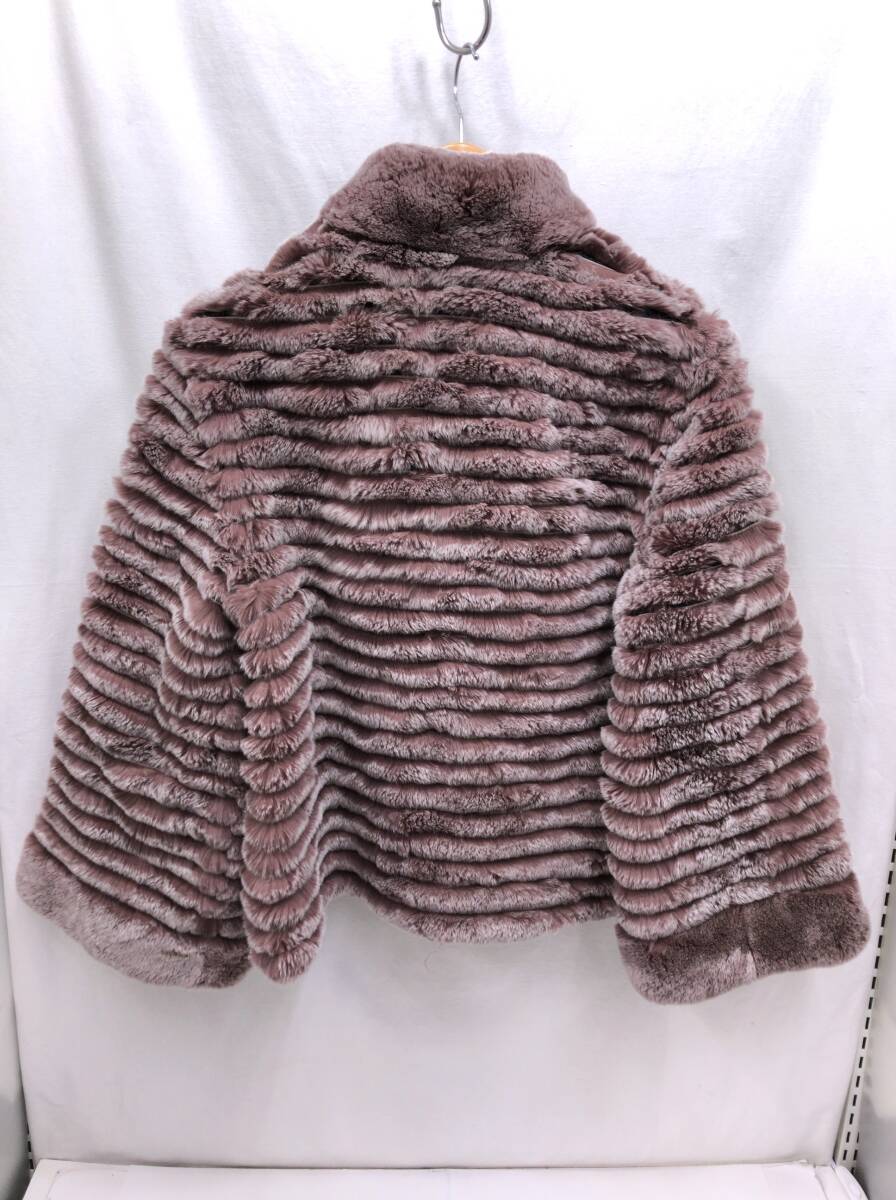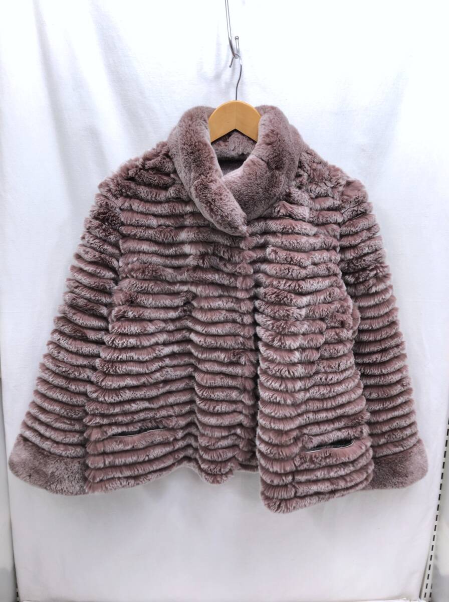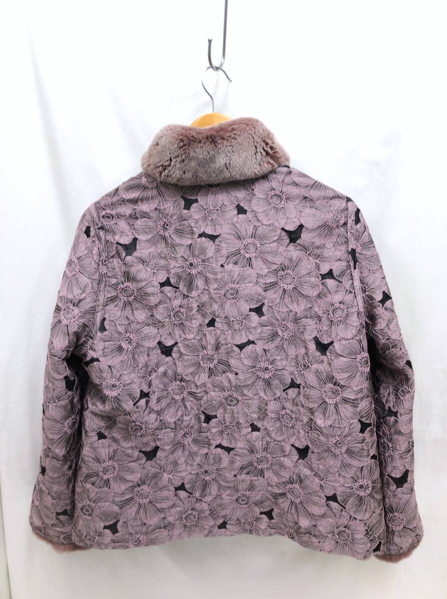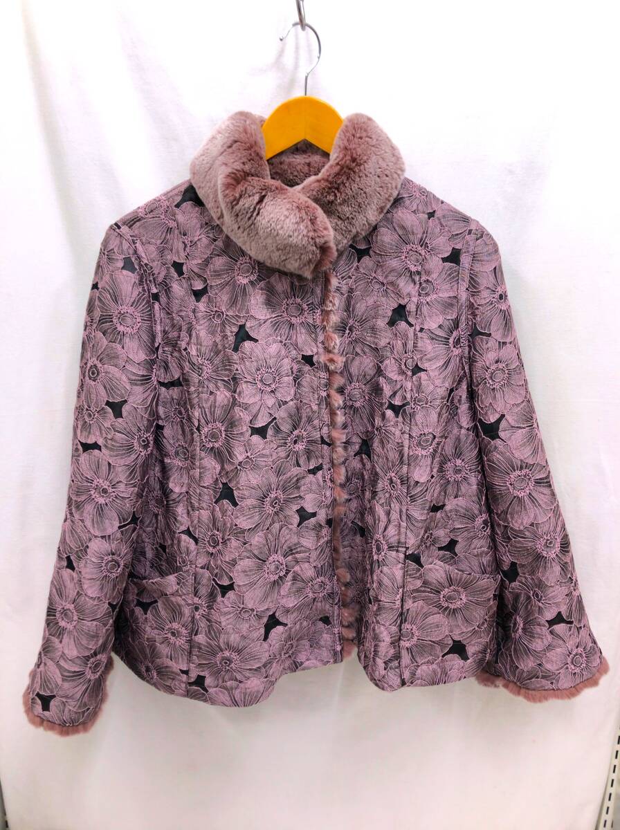 レッキス ファー ラビットファー リバーシブル ジャケット ファーx花柄レース ピンク レディース ショートコート 24102101