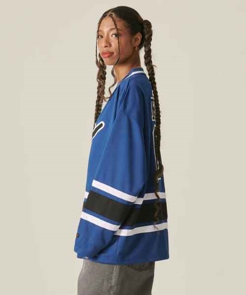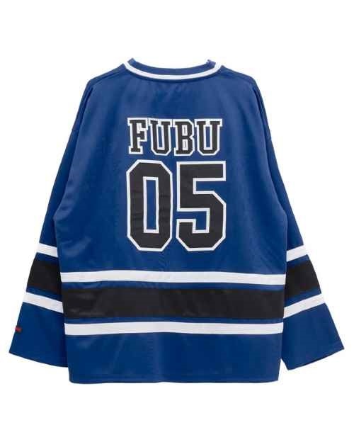 BJ26)FUBUホッケーシャツ/FAM-42714/ブルー/M/USサイズ/フブ/HIPHOP/B系/90年代/大きいサイズ