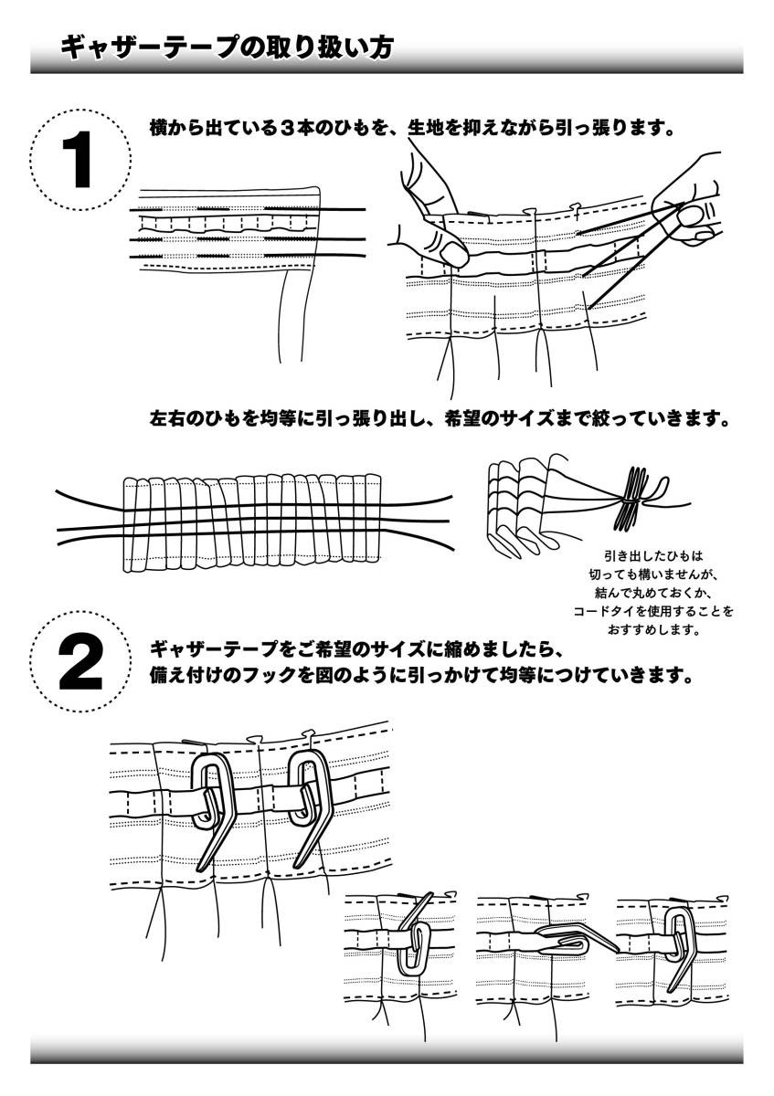 仕様:ギャザーテープ、フック(フックの取り扱い説明付き)