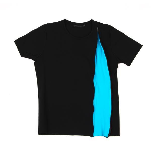 | ヨウジヤマモト ファムYohji Yamamoto FEMME ヨウジヤマモト ファムYohji Yamamoto FEMME ジップカラーマチストレッチTシャツ 黒水色M |