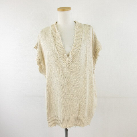 ローリーズファーム LOWRYS FARM ニットベスト ジレ ビッグシルエット ベージュ F *A695 レディース