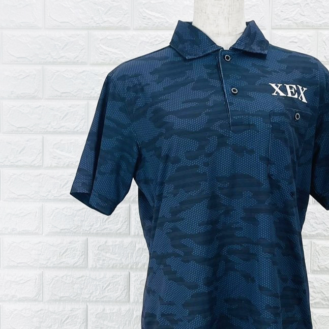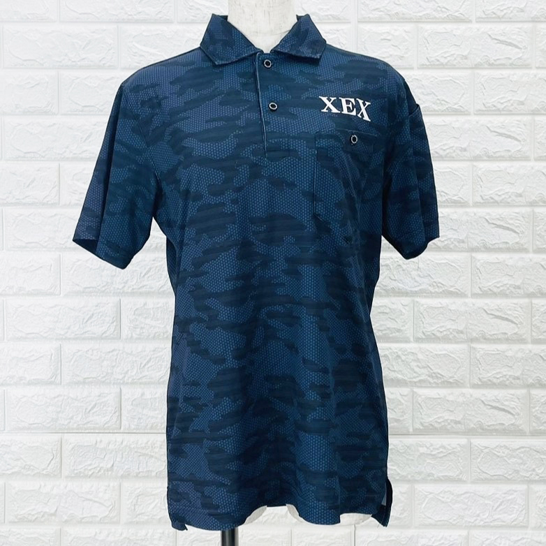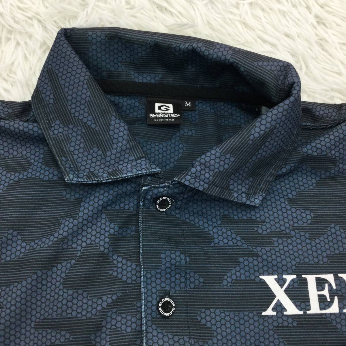 【A1386】GLADIATOR グラディエーター メンズ ポロシャツ ネイビー×ブラック 迷彩 ワークウェア ロゴ入り 半袖 Mサイズ