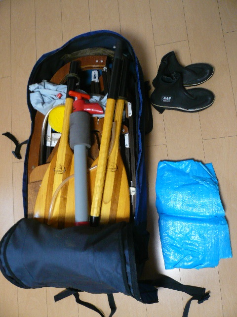 組み立て式木製カヤック 収納リュック付き の中古品です。