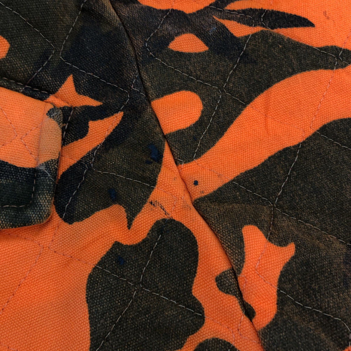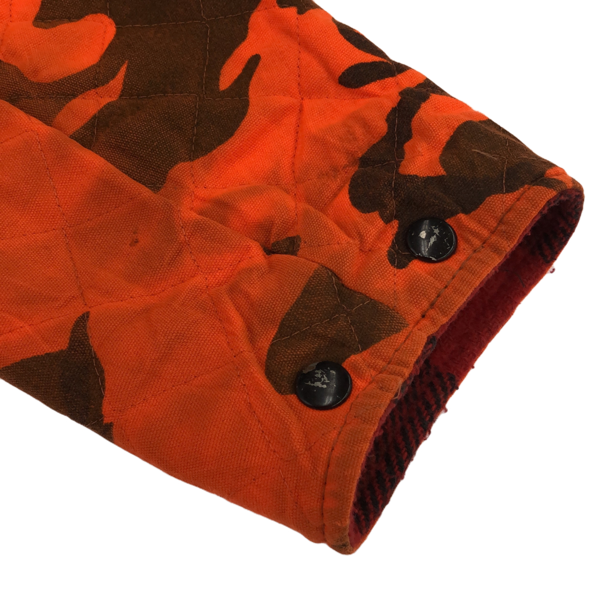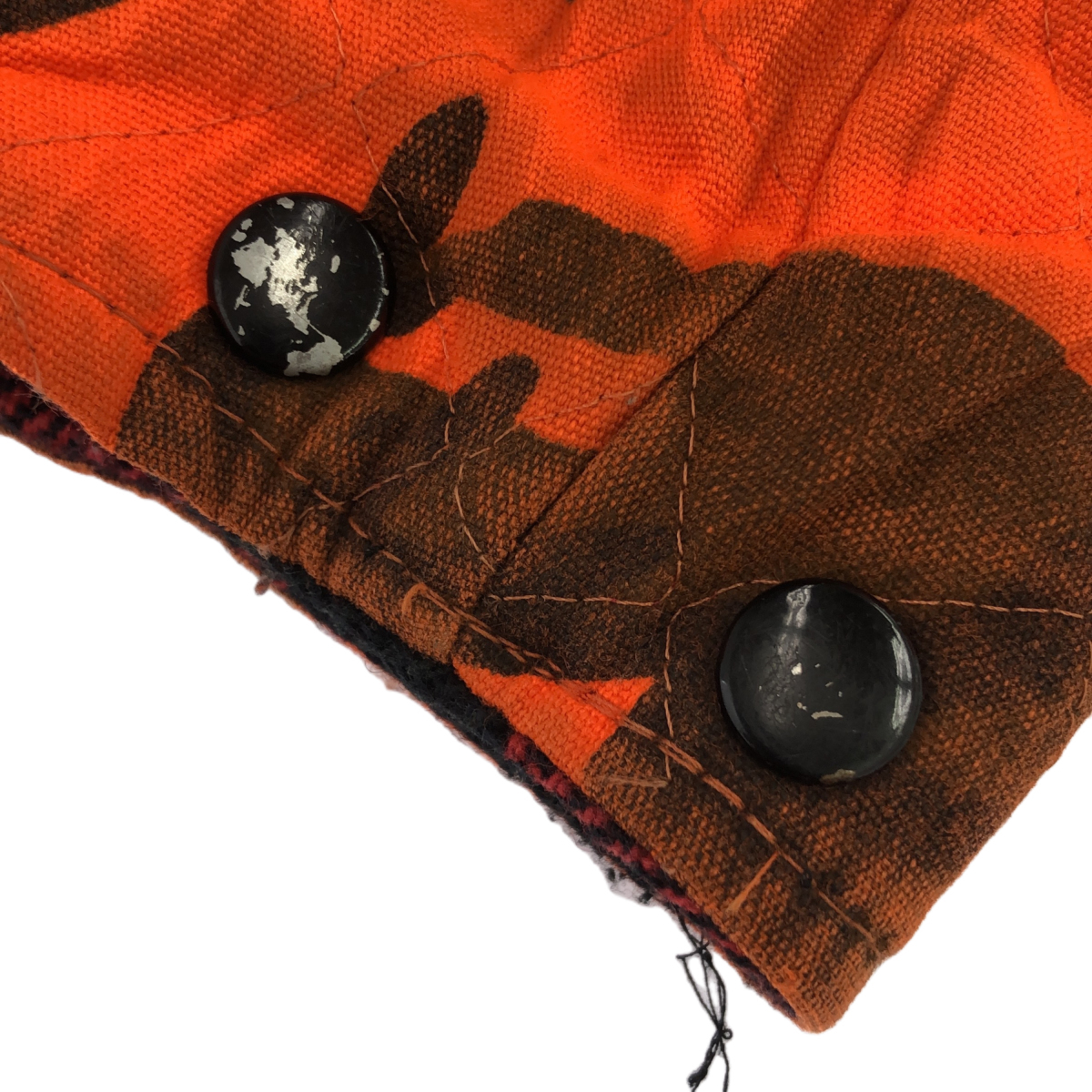 | STAFF COMMENT | 60~70'sのSHERATON SPORTSWEAR リバーシブルハンティングジャケットです。オレンジ地の方はカモフラージュ柄のようになっており、ファスナータイプのゲームポケットを含めて5ポケットございます。サイズは表記Mとなっておりますが、M~Lサイズはありそうです。状態はチェック柄の方は全体的に擦れ、毛羽立ち、少しの色褪せが見られ、オレンジ地の方は一部色褪せ、薄汚れが各所に見られますがまだまだお使いいただける商品です。 ※着用には問題ございませんが内部のポケットスレーキの加工に剥離が見られ、ゲームポケットのある箇所は動くと加工素材の音がなります。 |
