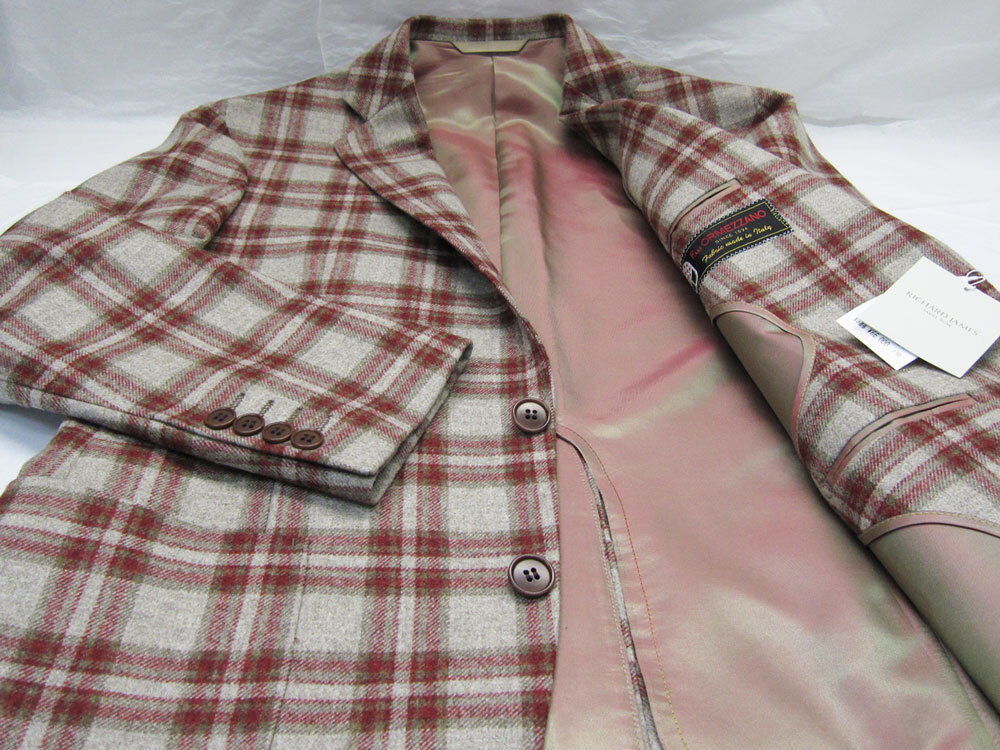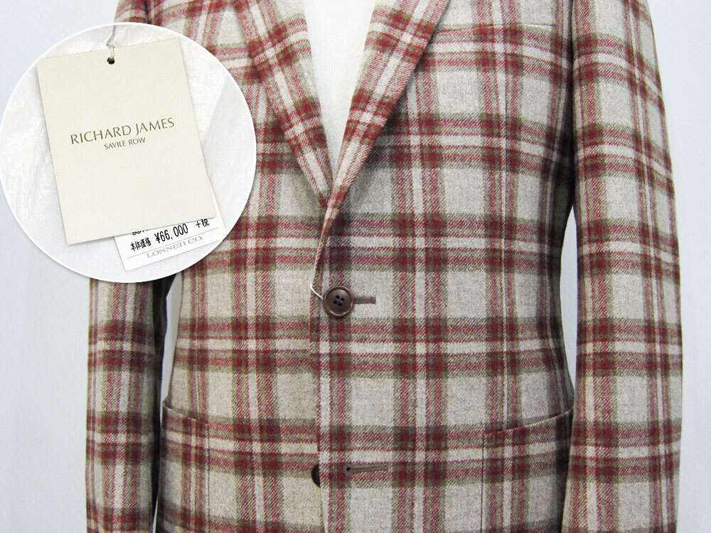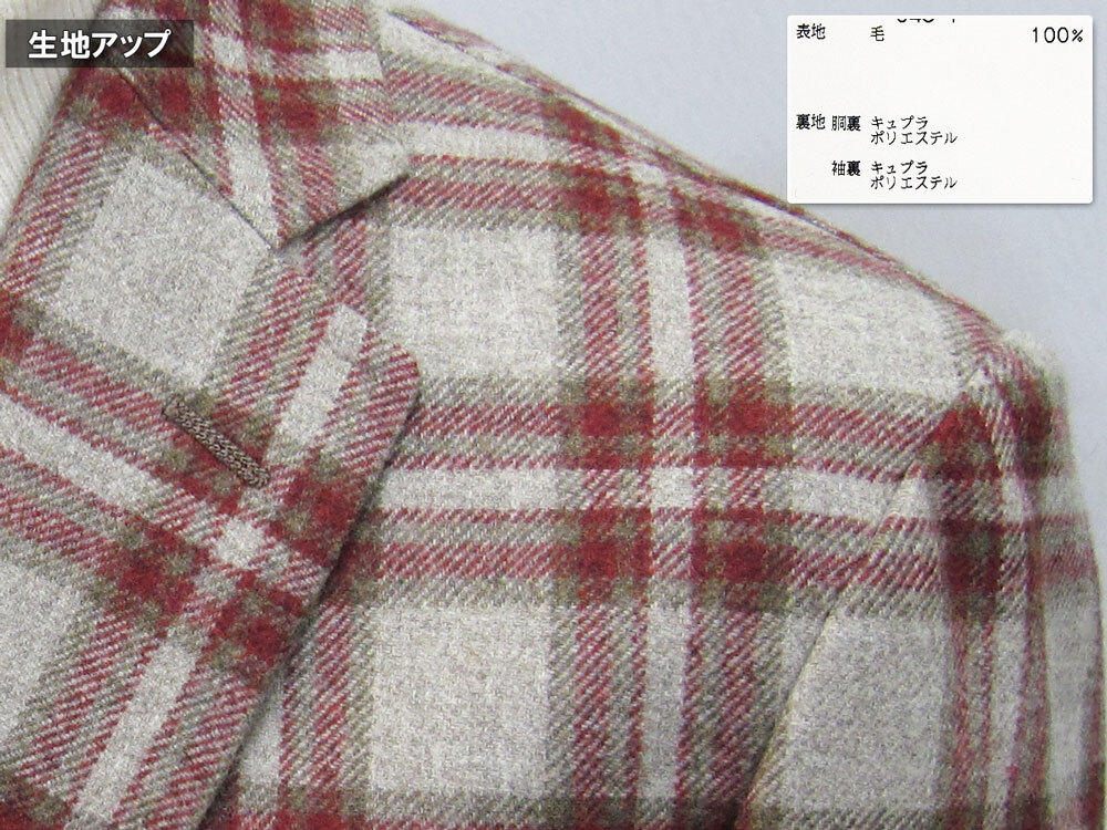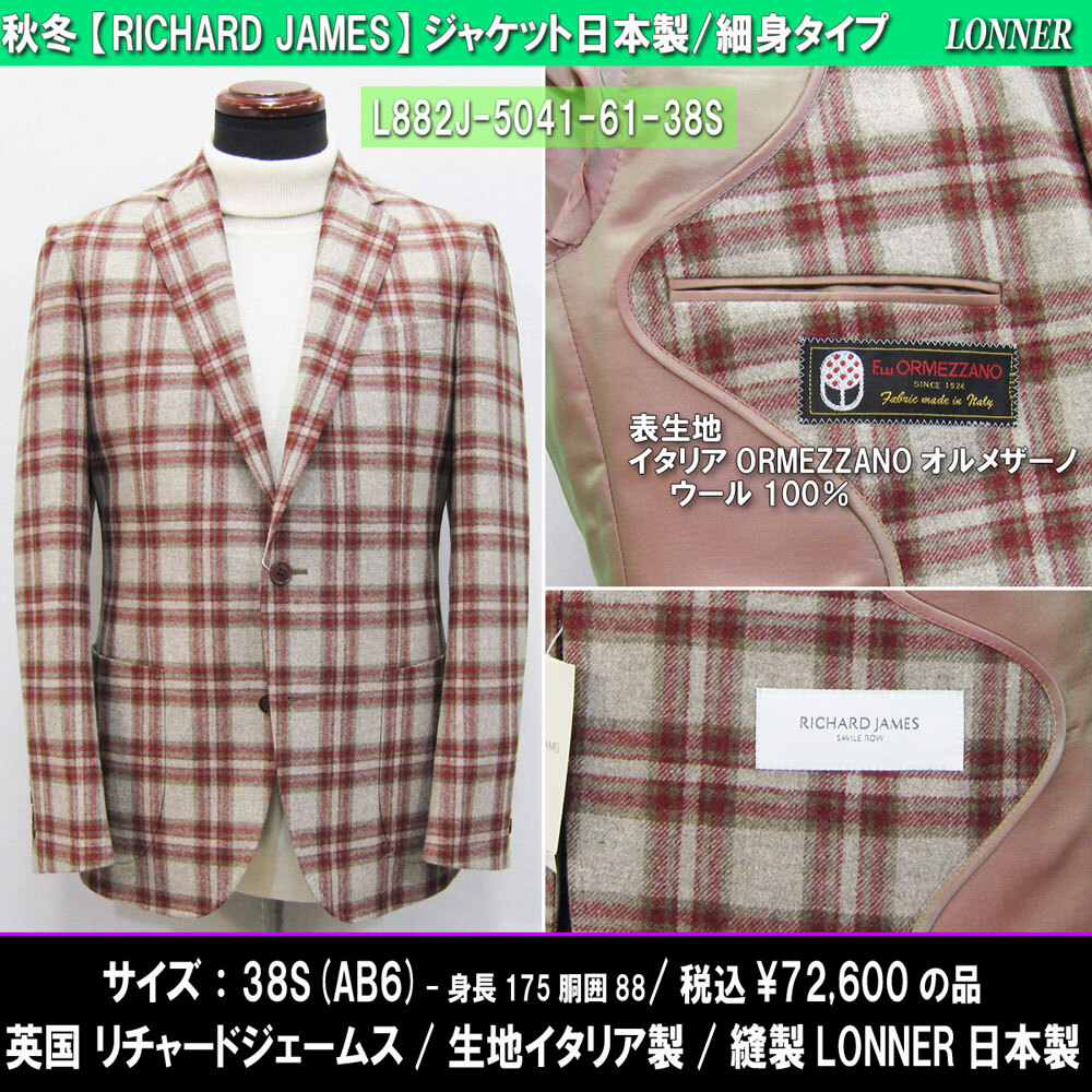 | 品名 | L882秋冬【RICHARD JAMES×ORMEZZANO】細身ジャケット38S/AB6(T175W88)クリムゾンレッド系格子柄/伊ウール/72600円/LONNER日本製 |