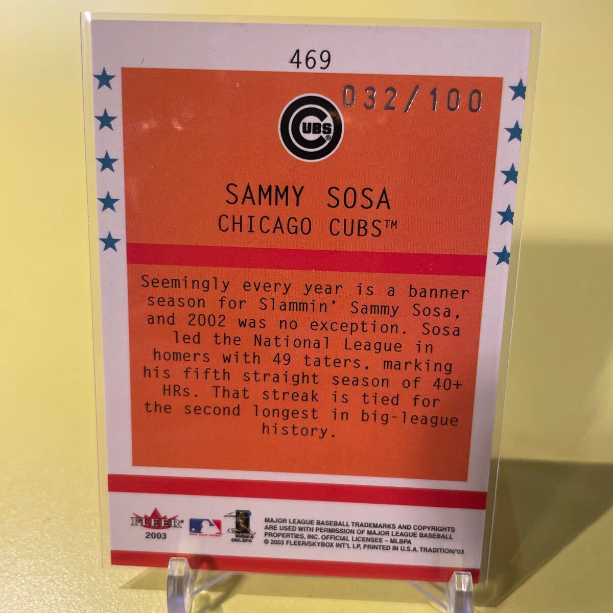 2003 Fleer Tradition Sammy Sosa Banner Season Chicago Cubs 032/100 シリアル MLB baseballカード サミーソーサ