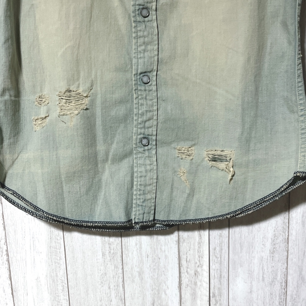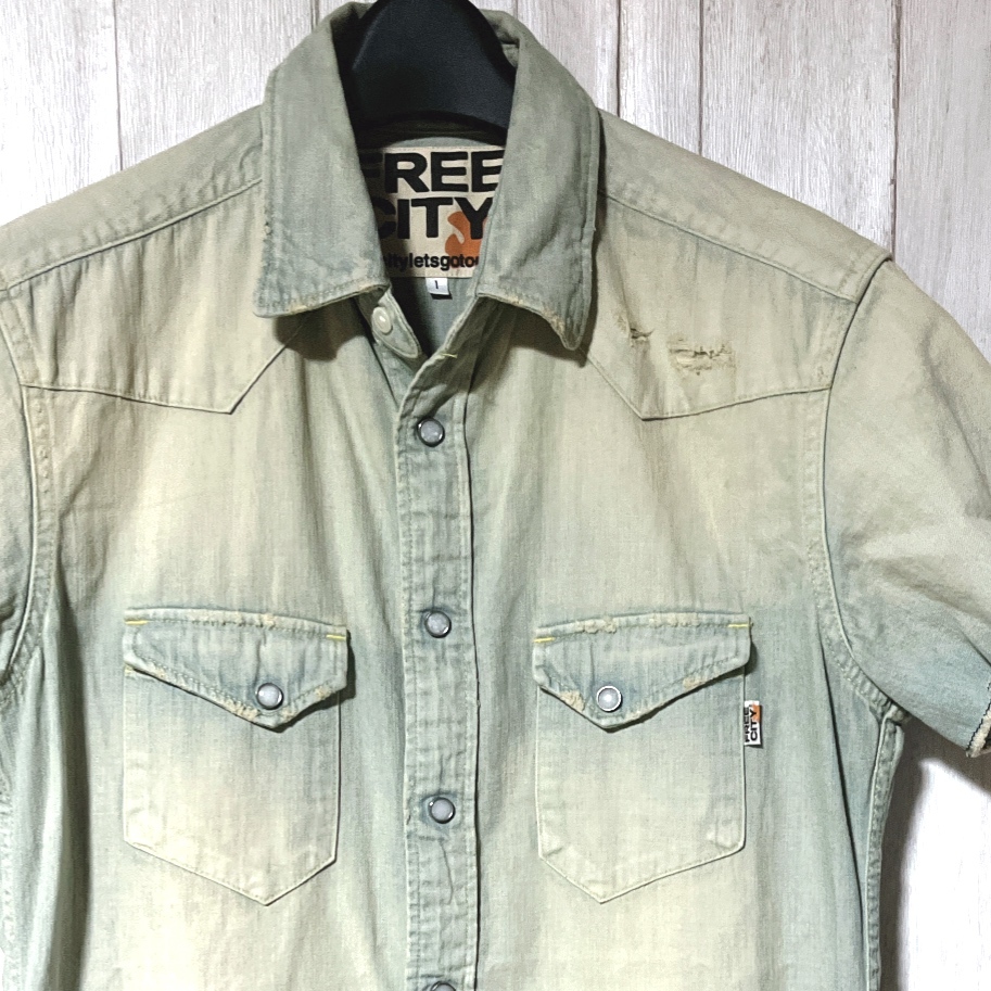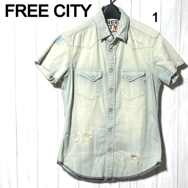★フリーシティ FREE CITY ダメージ加工 半袖 デニム ウエスタンシャツ