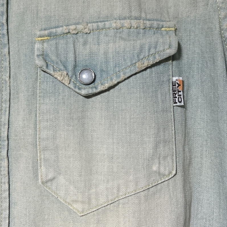 聖林公司扱い、フリーシティ FREE CITY のダメージ加工 半袖デニムシャツです!