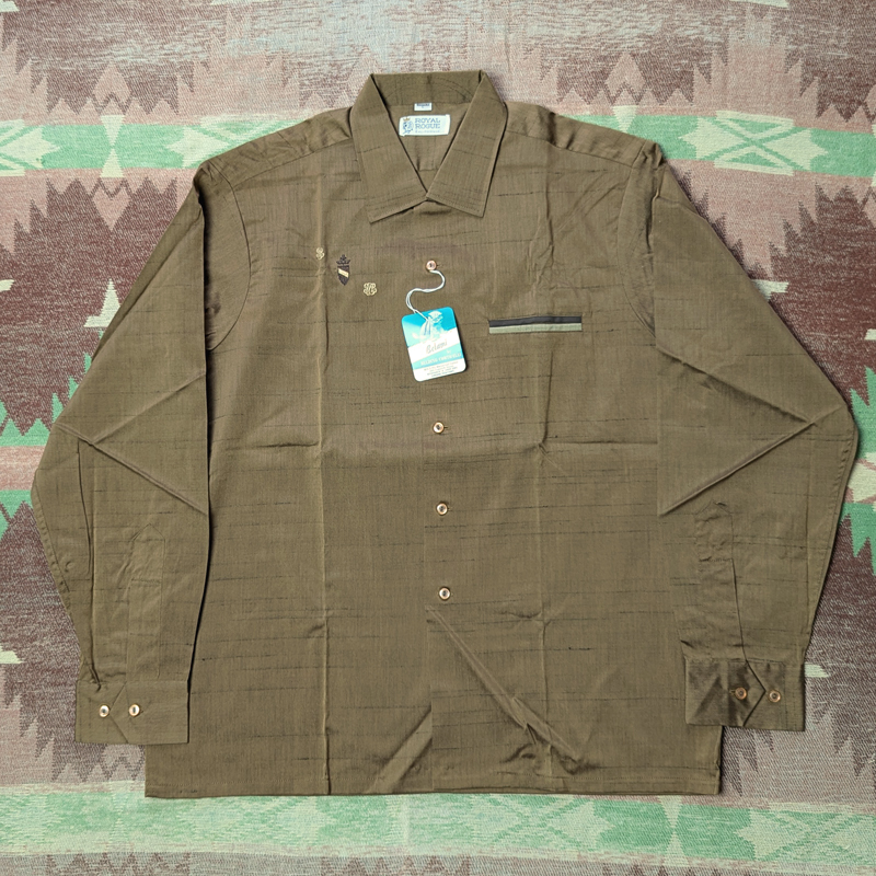 かすり 【ROYAL ROGUE】 60年代 オープンカラー ボックス シャツ L コットン レーヨン ロカビリー デッドストック ビンテージ 50s60s70s