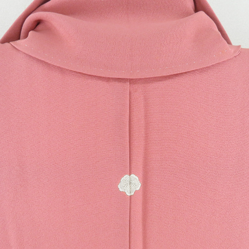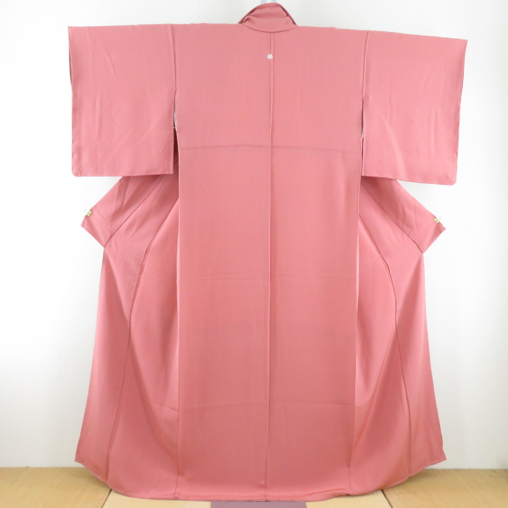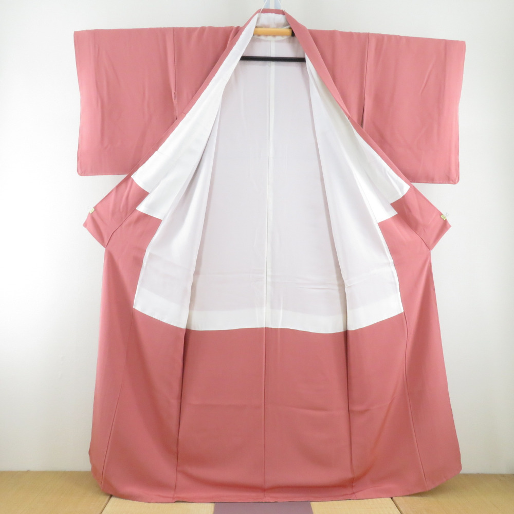 | 色無地 袷 広衿 桃紫色 正絹 一つ紋 蔦紋 仕立て上がり着物 身丈161cm |