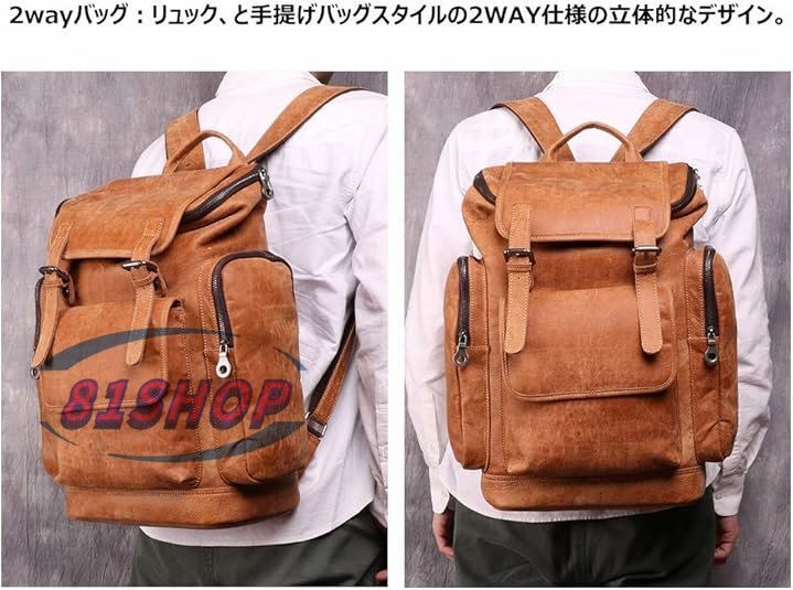 「81SHOP」 天 然牛革 ビジネスバッグ メンズ 2WAY 手提げ・リュック バッグ 天然 本革 A4 15.6インチpc収納可大容量 旅行 出張用 通勤 通