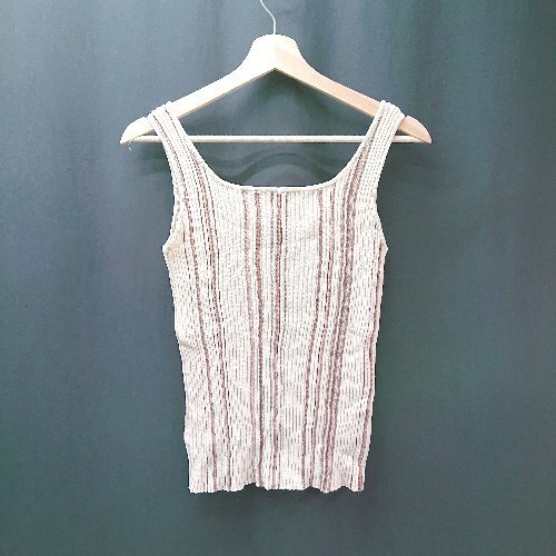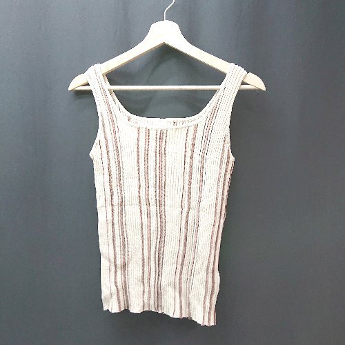 ◇ clair apres jour ストライプ柄 ストレッチ ラウンドネック タンクトップ サイズF アイボリー レディース E