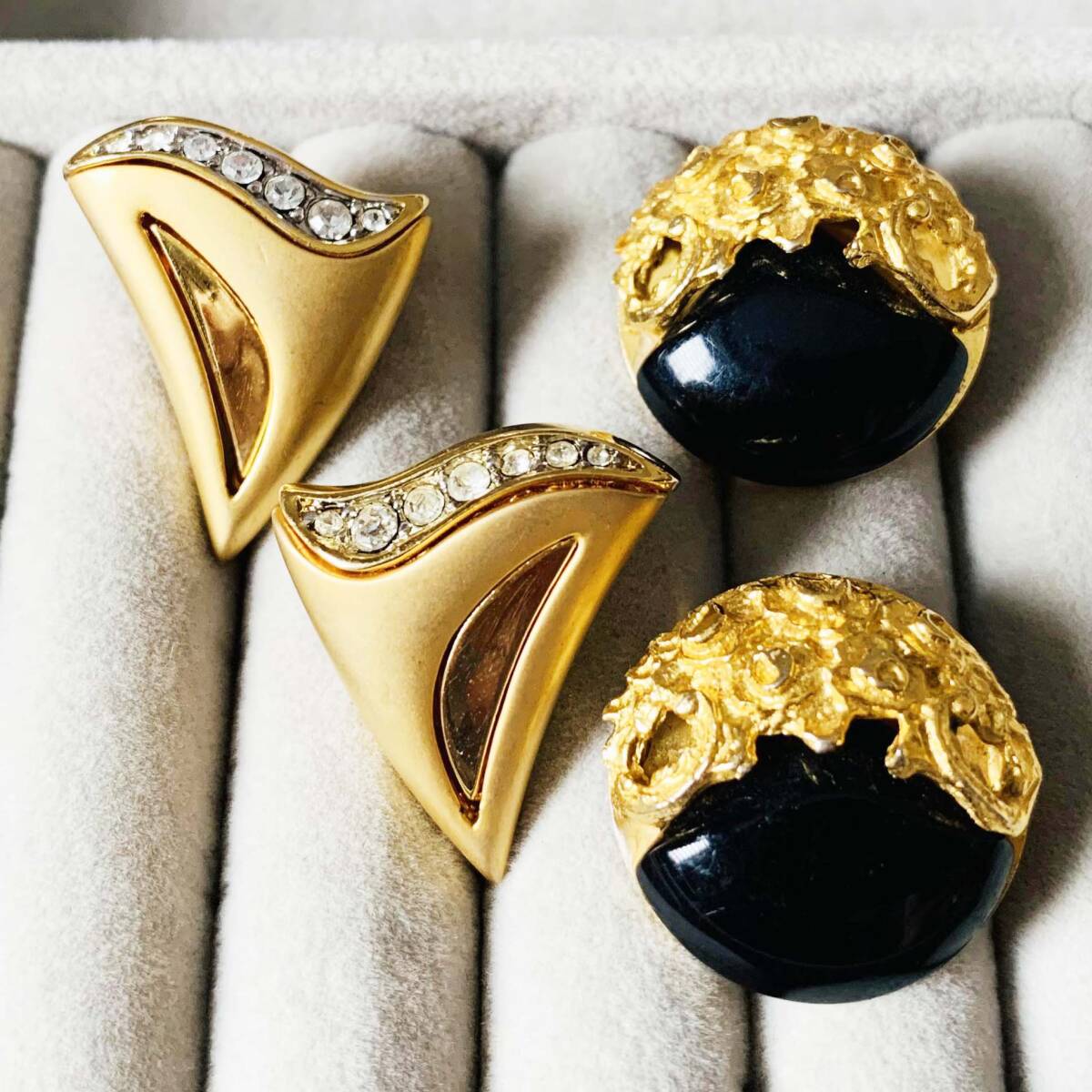 美品 MAYU刻印あり 天然オニキス ゴールド イヤリング お得2点セット No.5852