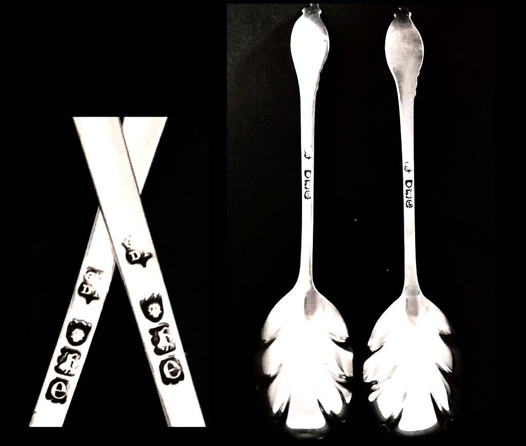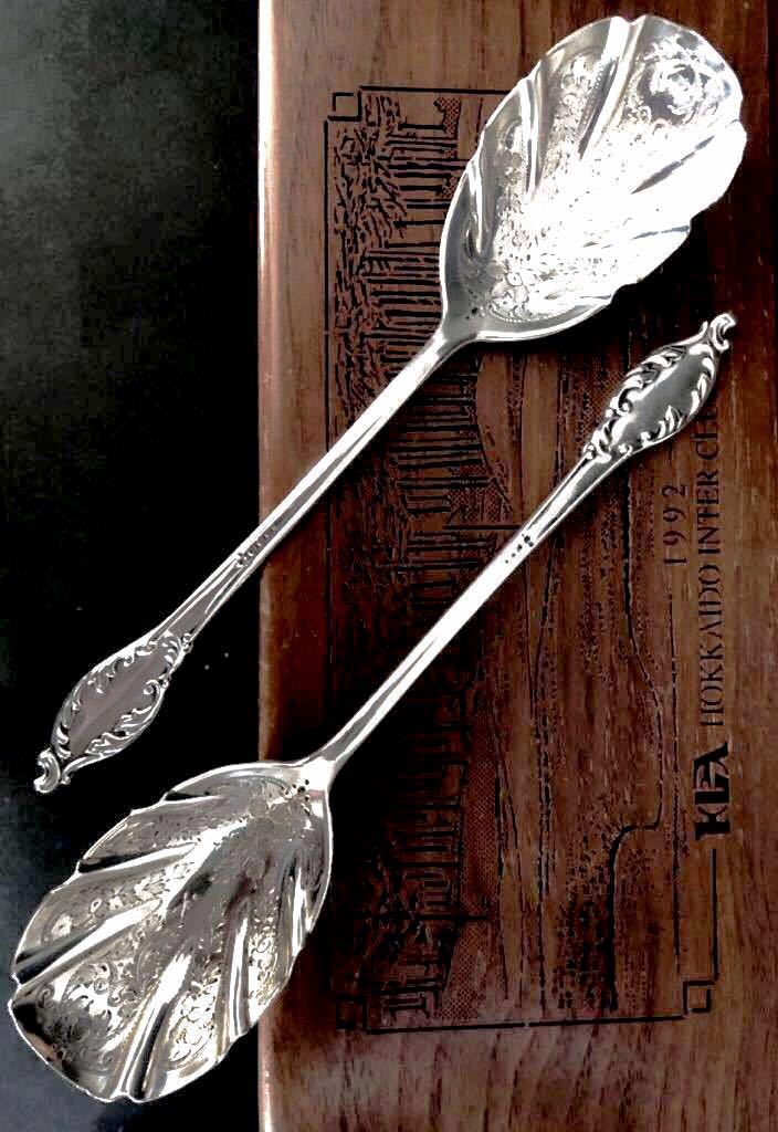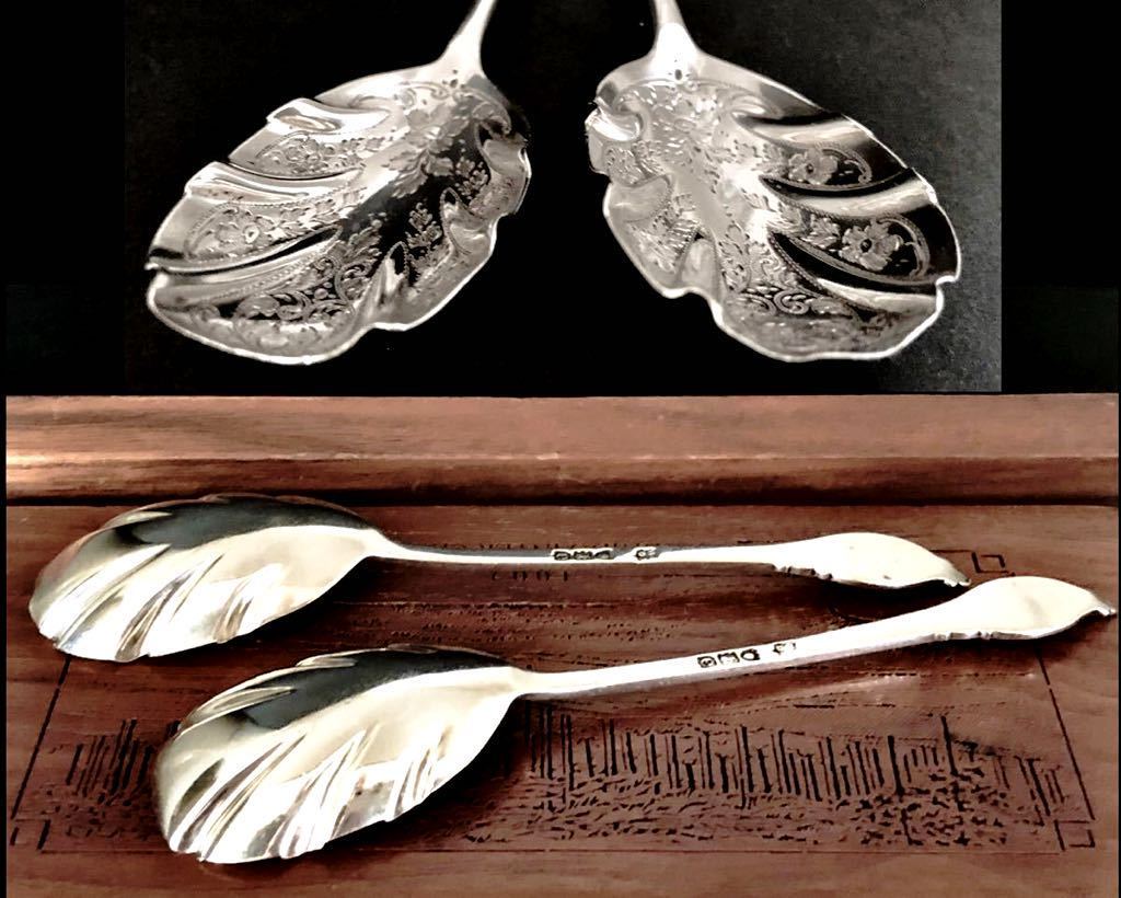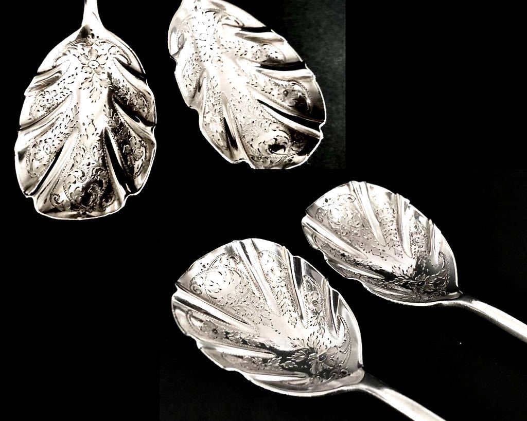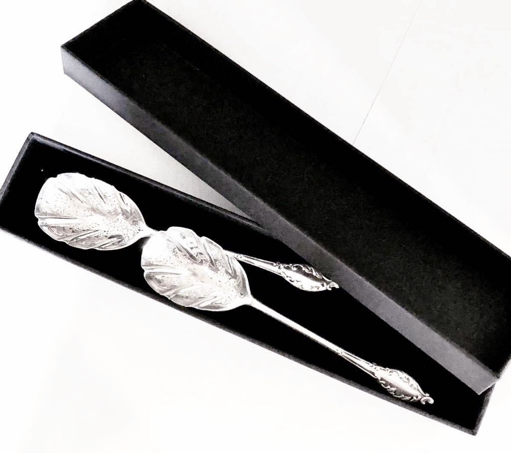英国アンティーク アール・ヌーヴォー ジャム/ベリースプーン シェル型 シルバーカトラリー2点 純銀 ロンドン ビクトリア期1900年