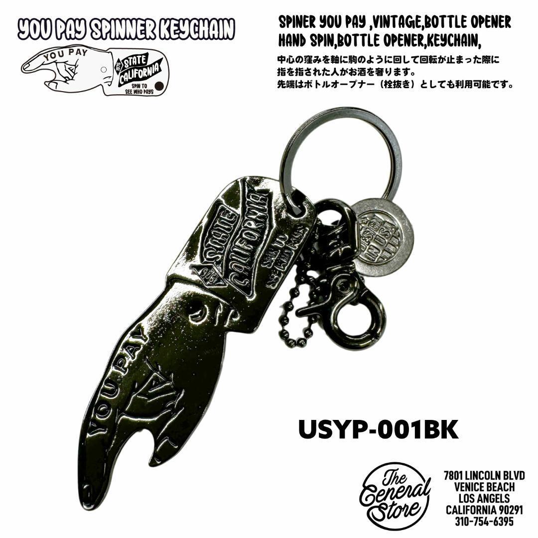 ブラック・真っ黒・ホワイト・レッド・グリーンの5種類あります。 ここではまっくろの販売。 重さと言い存在感抜群のかっこいいキーホルダーです。 ハーレーのカギに似合いますよ! 車のカギにもぴったり! 滅茶苦茶かっこいいです!!!!! 納車記念・誕生日プレゼント・ペアで持っているとセンスいいですよ~ アメリカンビンテージな雰囲気溢れるYOUPAYキーホルダー 「You Pay Spinner Key Holder/ユーペイスピナーキーホルダー」になります。 元は昔、アメリカのドリンク会社のノベルティとして配られておりました。 ダブルリングより取り外してテーブルに置いてコマの様に回して指を指された人が飲み物などをおごるというゲームができ、 様々なデザインが作られていました。 今回、人気のカリフォルニアデザインにて復刻しました。 ゲーム以外にも栓抜きとして利用できます。 ハンドメイドの真鍮で作られており使うほどに経年劣化でいい風合いになります。 アメカジ好きな人やバイカーの人へのプレゼントにも最適です! Wリング30mm/フック35mm/本体82mm×30mm/ 厚み1.5mm/重量38g