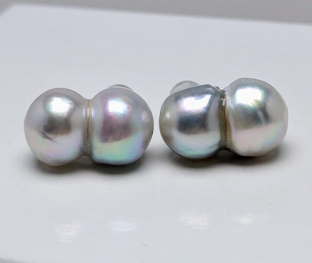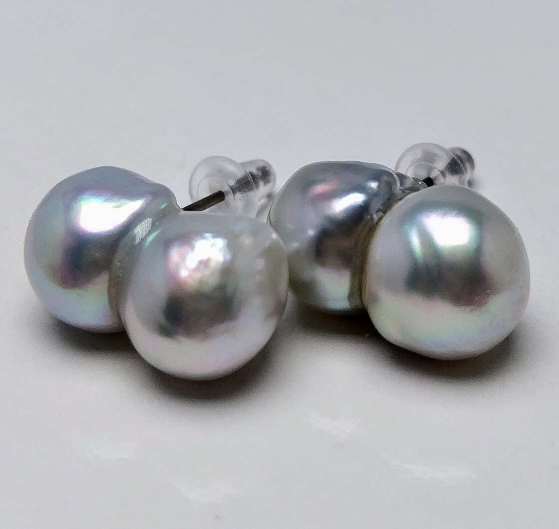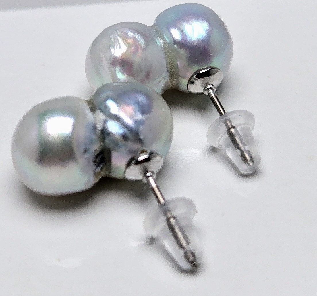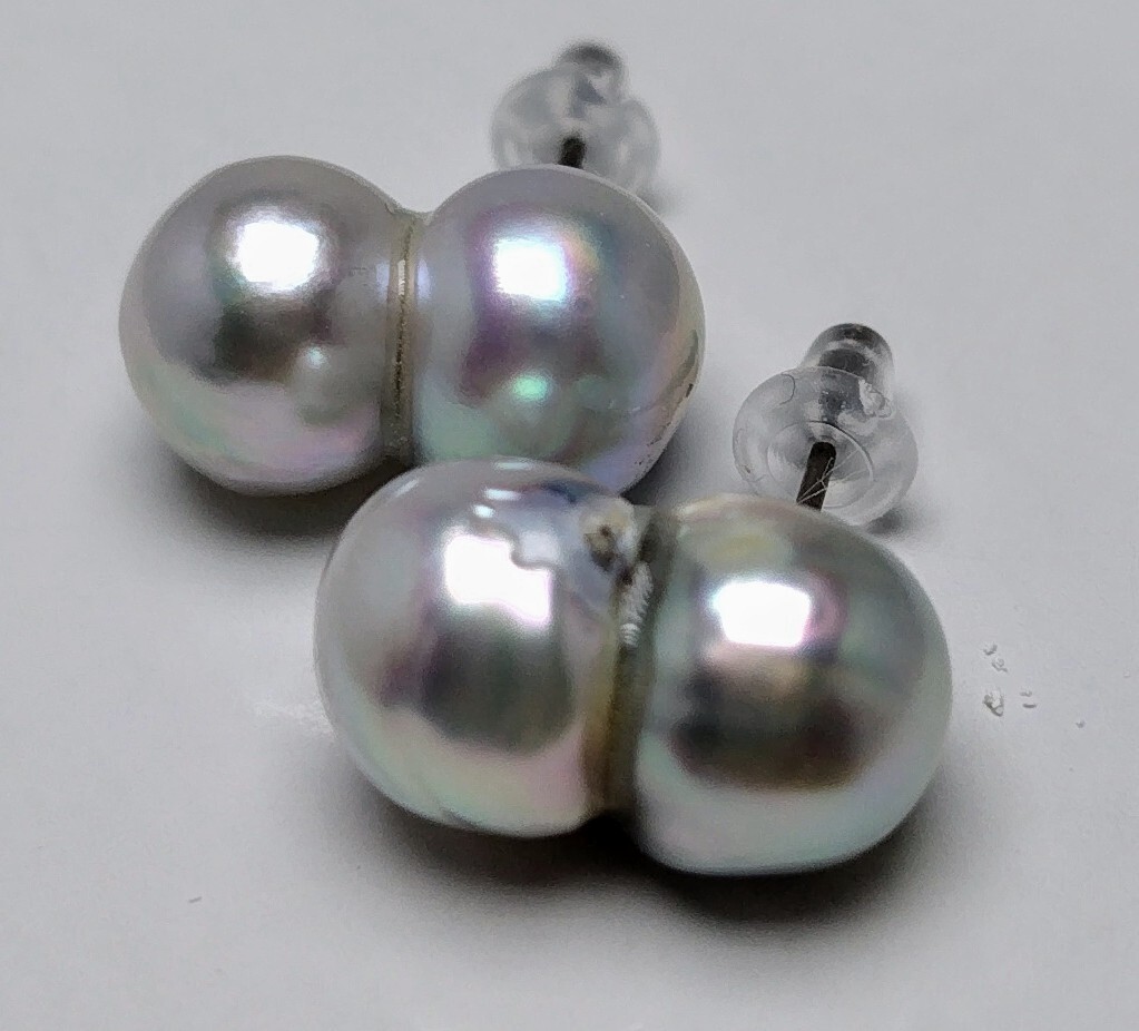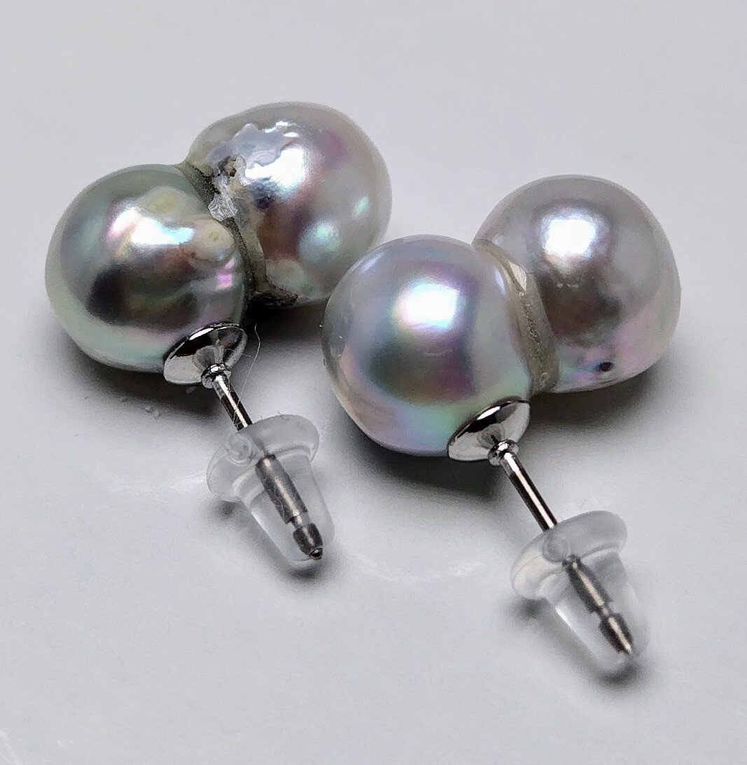 真珠専科 色テリ最高 ナチュラル あこや真珠 16.4㎜×9.8㎜ ツイン(双子) 直結 ピアス