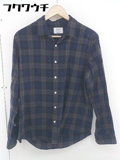 ◇ ◎ EDIFICE エディフィス チェック 長袖 シャツ サイズ 50 ネイビー グレー メンズ