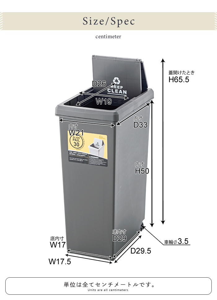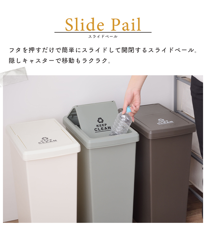 | ※【同シリーズ】のリンクは当店のヤフオク店のページへ進みます。 ● スタッキングペール [スリム]30L / 45L [ワイド]30L / 45L ● スライドペール:30L / 45L ● スライドペダルペール:45L ● ラウンドペール:45L ● バラフライペダルペール:32L ※このページは[スライドペール 30L]を販売しております。 |