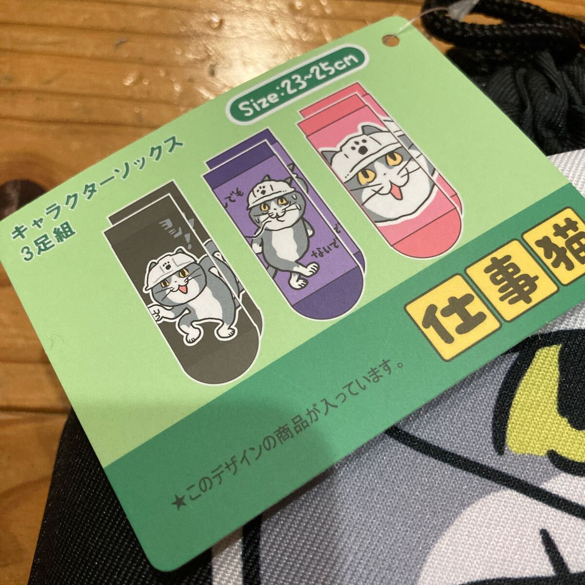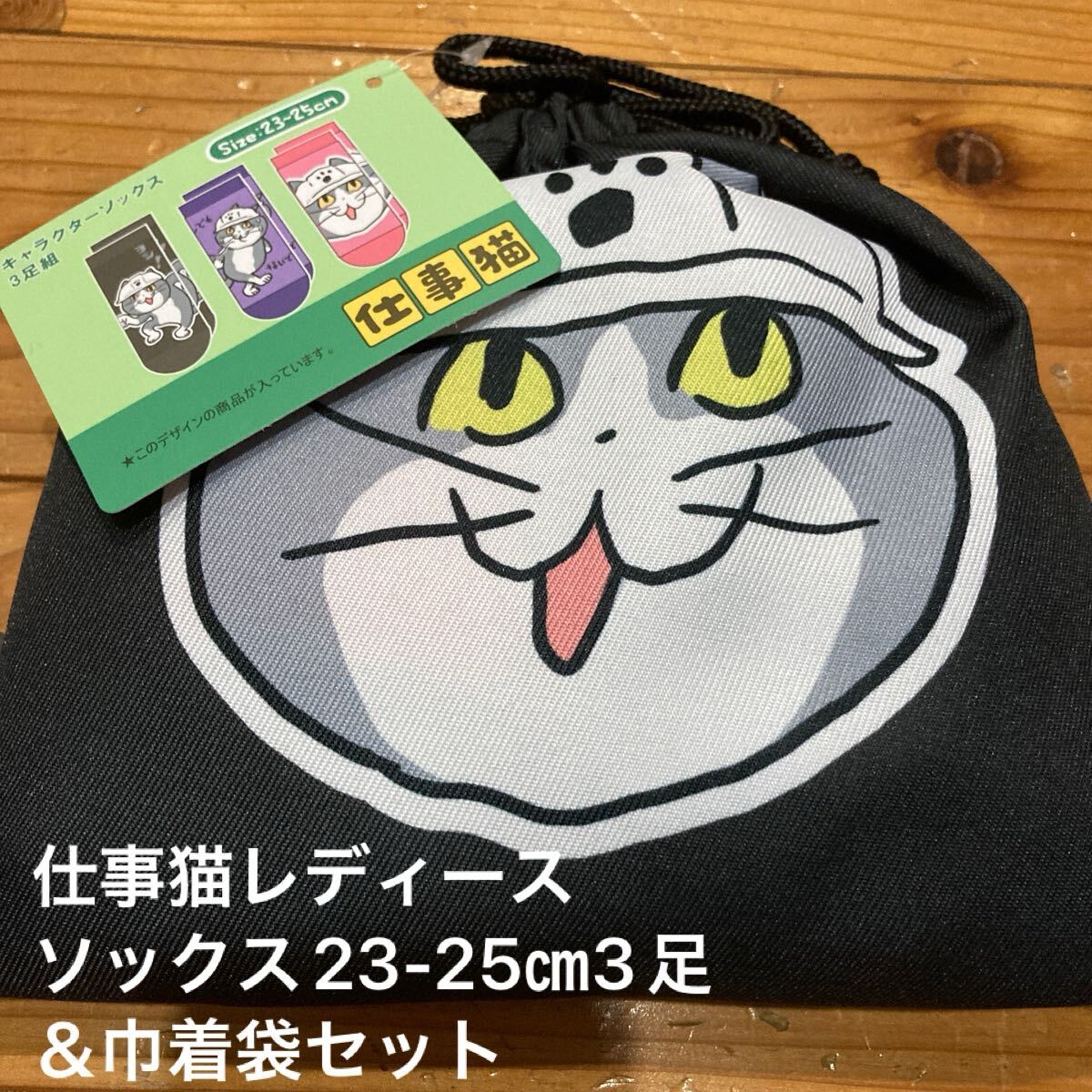 新品未開封仕事猫レディースソックス23-25㎝3足&巾着袋セットです