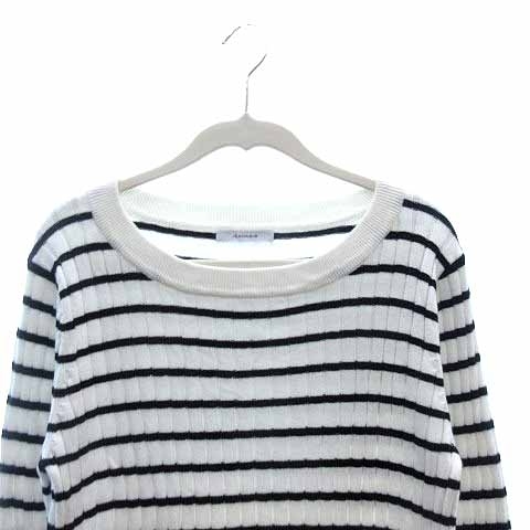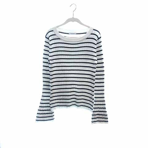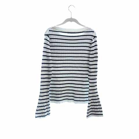 ジーナシス JEANASIS ニット カットソー フレアスリーブ ボーダー 長袖 F 白 ホワイト 黒 ブラック /YK レディース