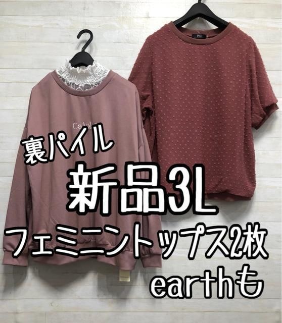 新品☆3Lピンク系♪フェミニントップス2枚セット♪earthも♪☆f718