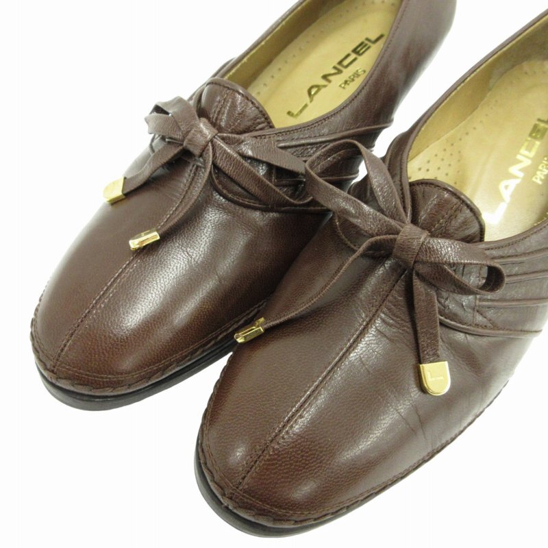 ランセル LANCEL パンプス シューズ リボン ヒール レザー 4.5 21.5cm 茶 ブラウン /FF 0822 ■GY11 レディース