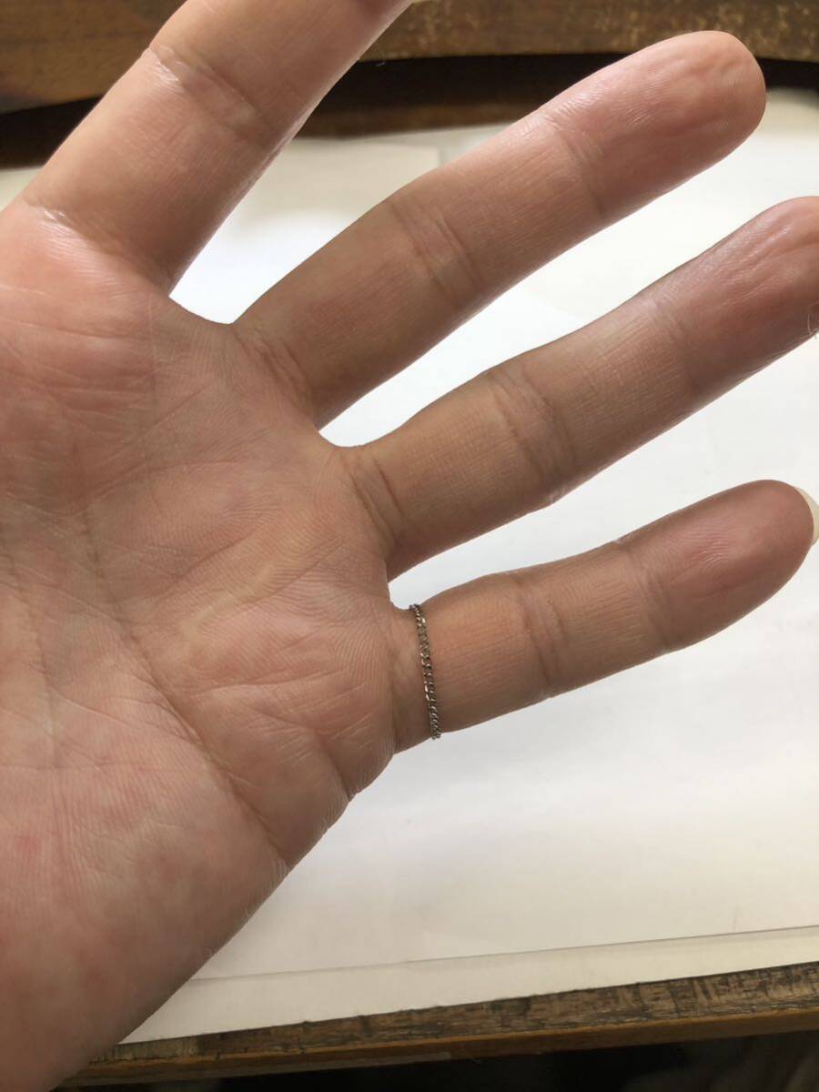 普通のリングよりもチェーンリングは1号〜2号大きいサイズが指にフィットします。