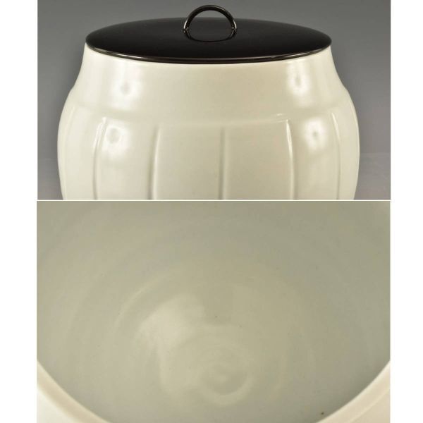 C07048 川瀬満之 白瓷刻線文水指:真作